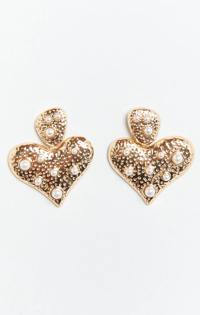 Show Me Your Mumu Accessories Amore Heart Earrings ~ Gold/Pearl