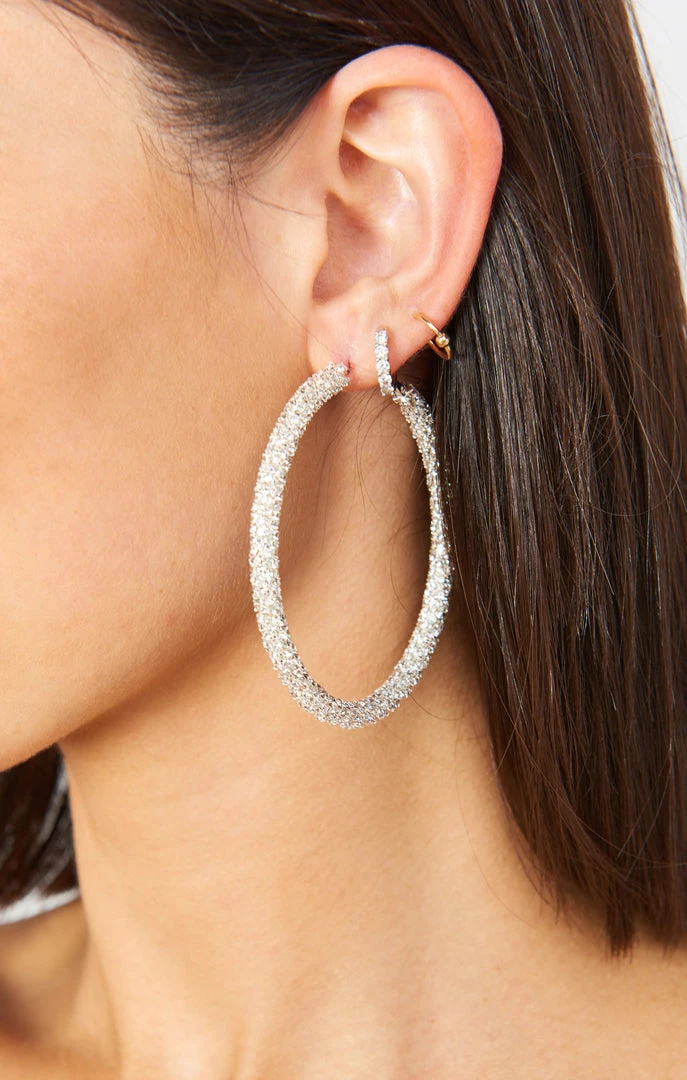 Show Me Your Mumu Accessories Delphine Pave Hoop Earrings ~ Silver