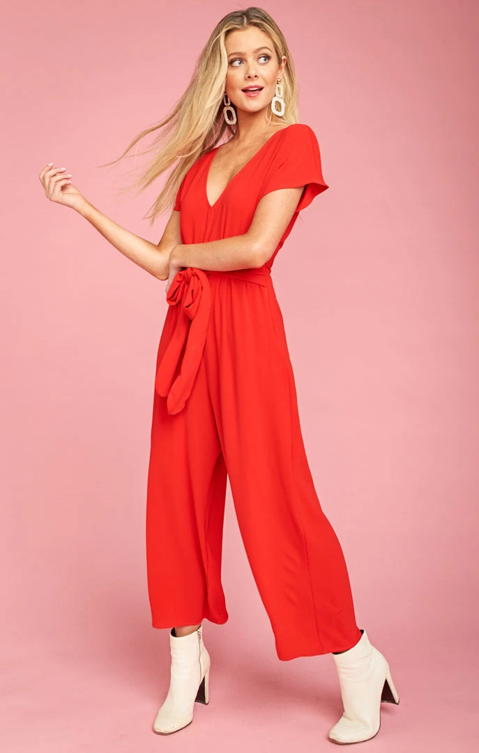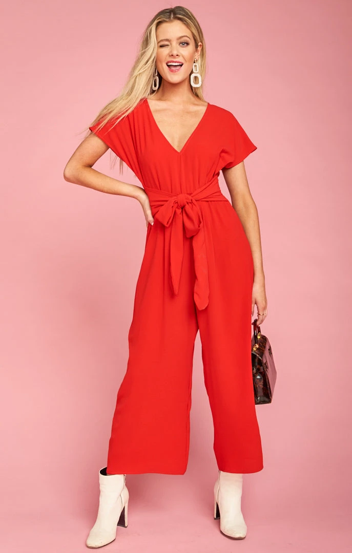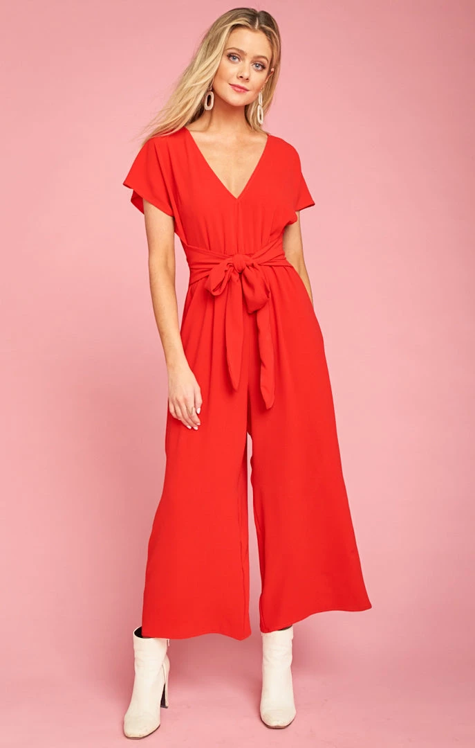 Show Me Your Mumu Alia Jumpsuit ~ Tango Red Crinkle Stretch