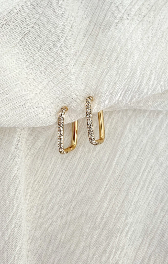 Rectangular hoop with cz stones. Adds the perfect shine!