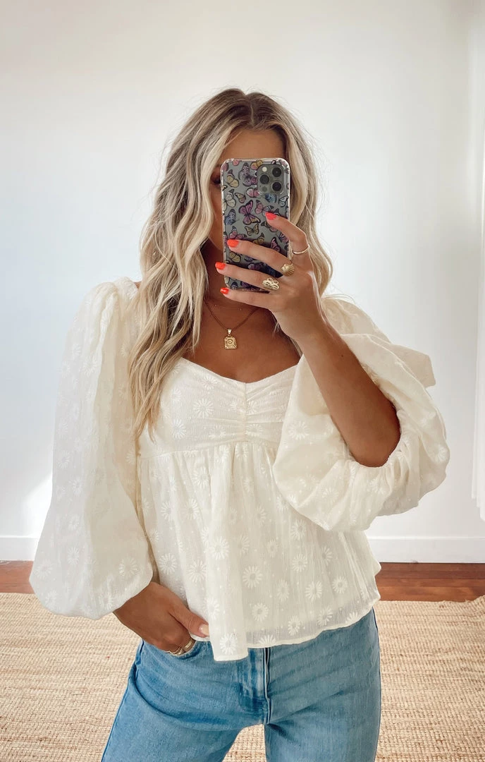 Femme, floral and fun in this statement top. With a fully smocked back, sweetheart neckline and puff sleeve, you will be dolled up to perfection. Finish out summer strong with some denim shorts, and transition to fall under a fave cardi! Whatever you have planned, this top has you covered.