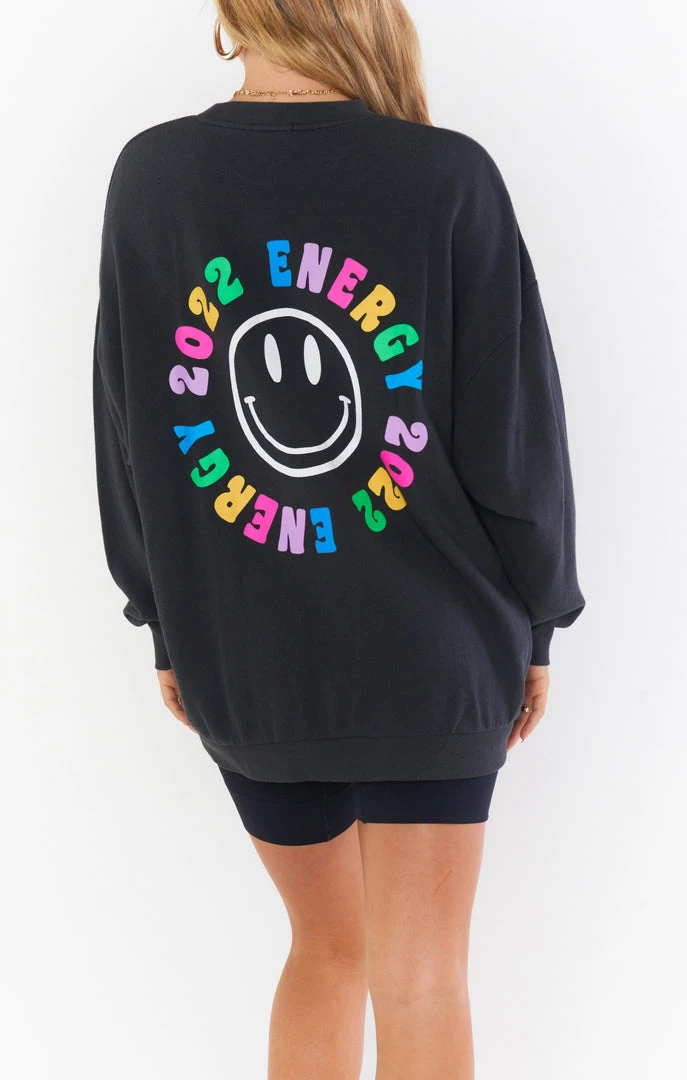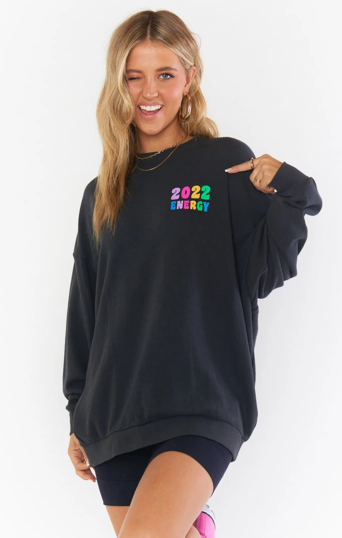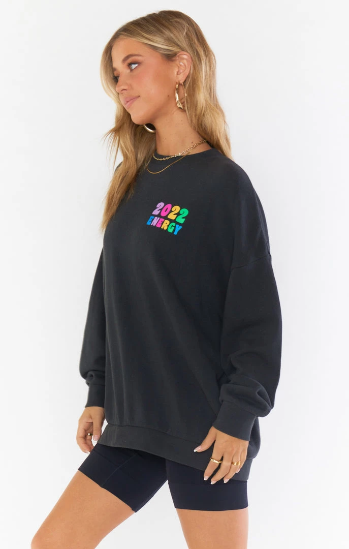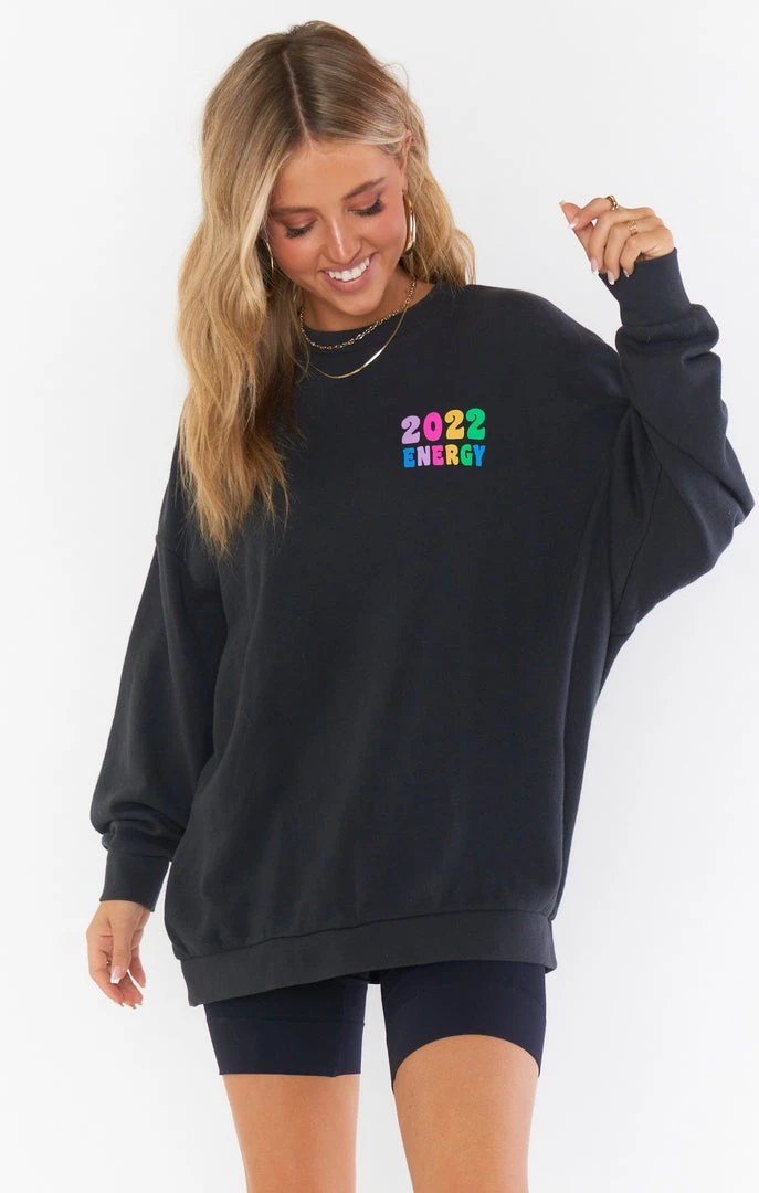 2022 vibes only in this lightweight oversized graphic sweatshirt. Long enough to cover your booty, so wear it dressed down with leggings, or elevate with your fave denim and booties.