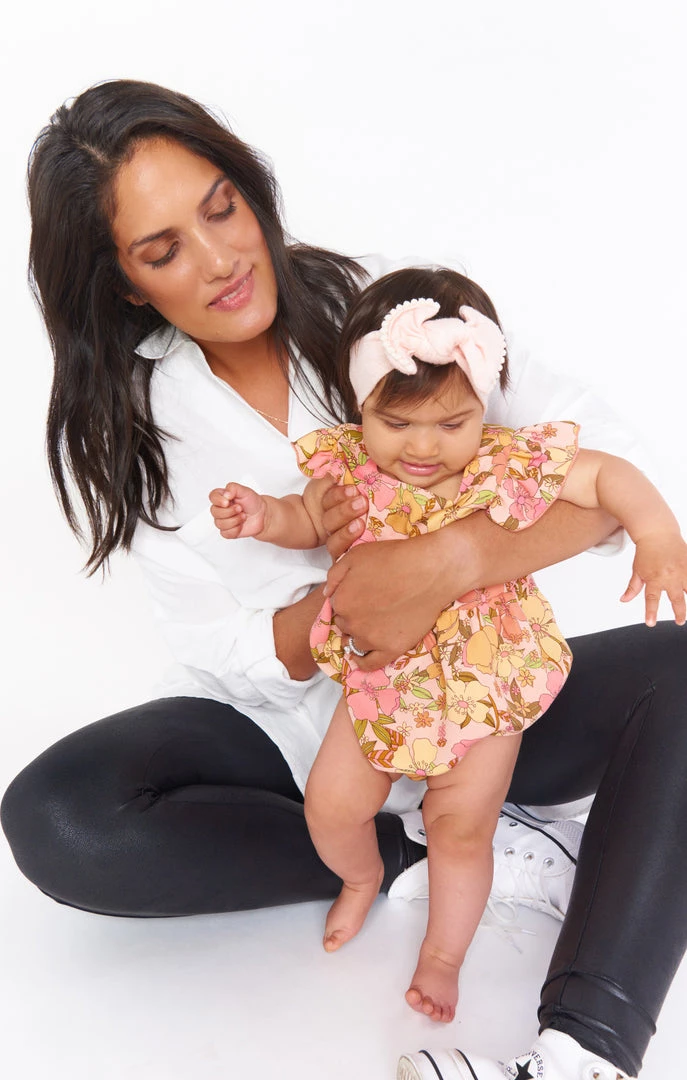 Fluttery crisscrossed straps and a breezy open back dial up the cute factor on this adorable April Ruffle Jumper. You’ll be able to match your mama in this Pretty Poppy print!