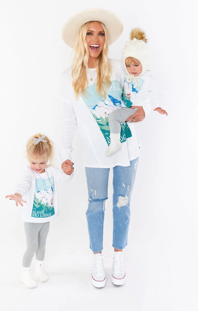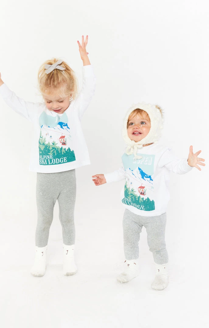 Match your mama and hit the mountains in this long sleeve tee shirt. With a scoop neck and ski lift graphic, you will be the cutest mini in the lodge.