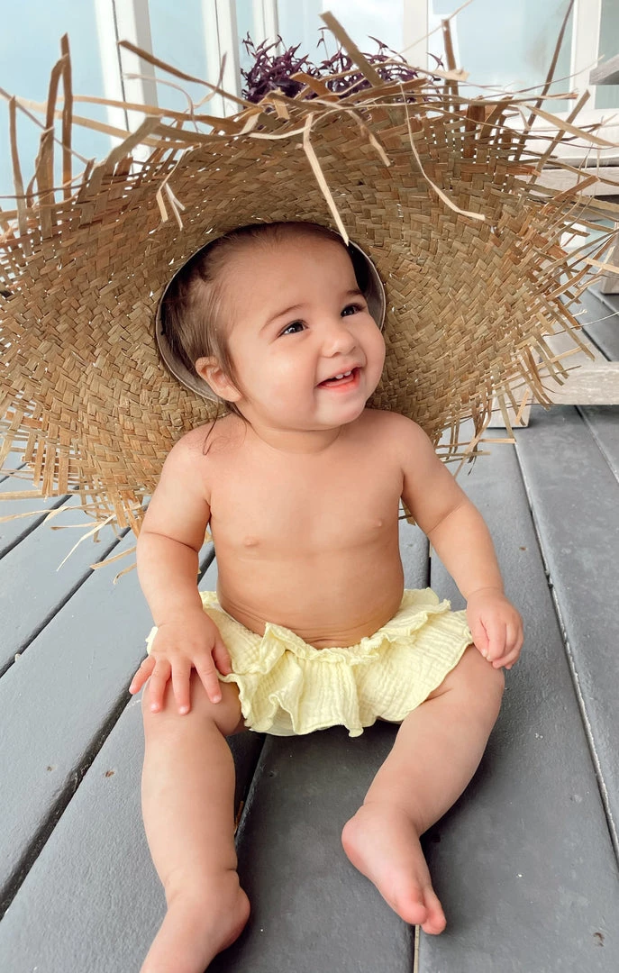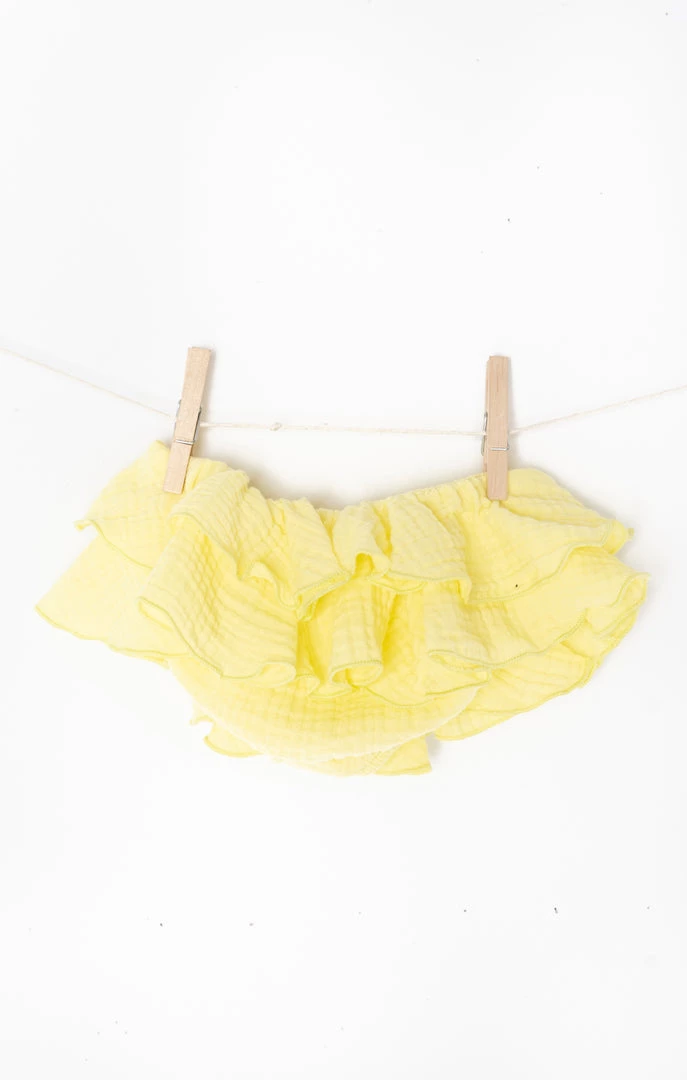 Is there anything cuter?! Complete your matching mama and mini looks with these cheerful yellow ruffled baby bloomers!