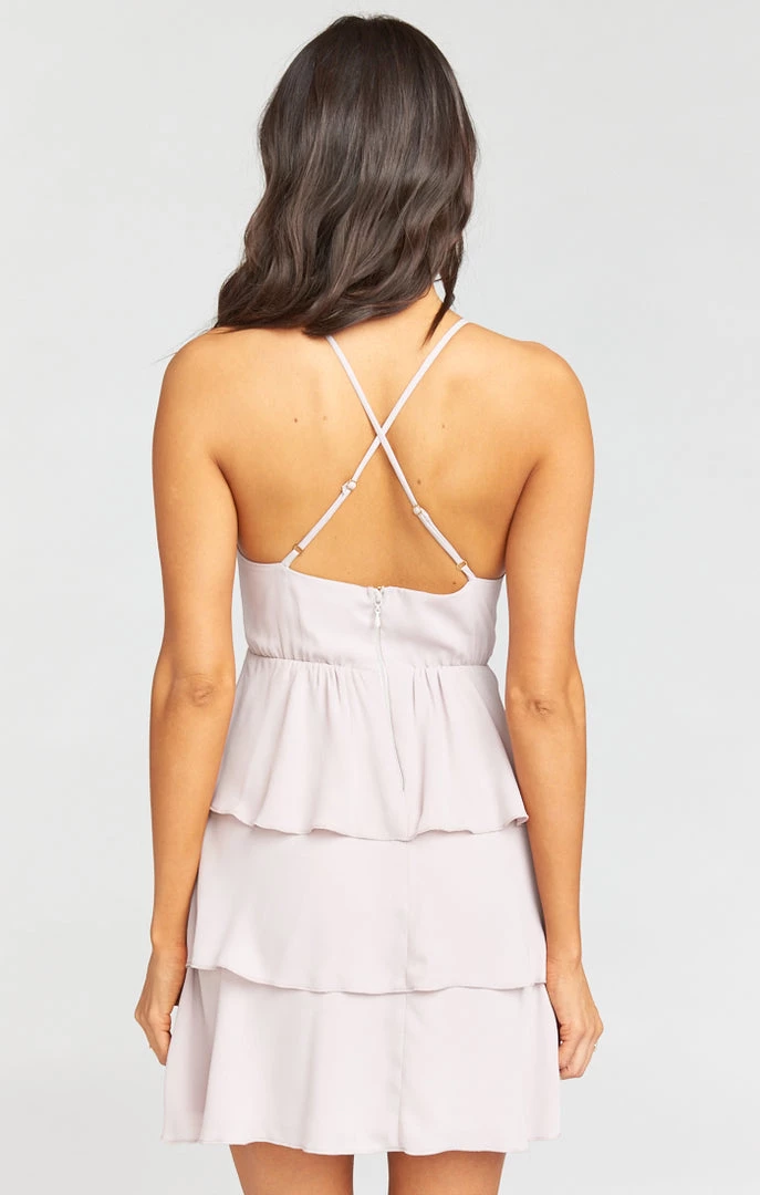 The perfect mini dress for a bridal guest! This dress features tiered ruffle detailing, adjustable straps and a crisscross back. Pair this dress with your fave heels and clutch and you’ll be wedding ready!