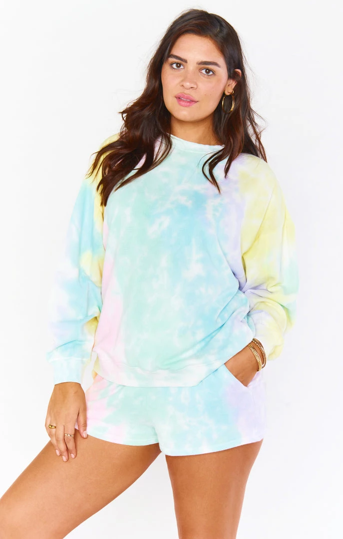 Perfectly oversized and designed to be slouchy, this tie dye Boyfriend Sweatshirt will be your new go to. Pair with matching girlfriend shorts or denim!