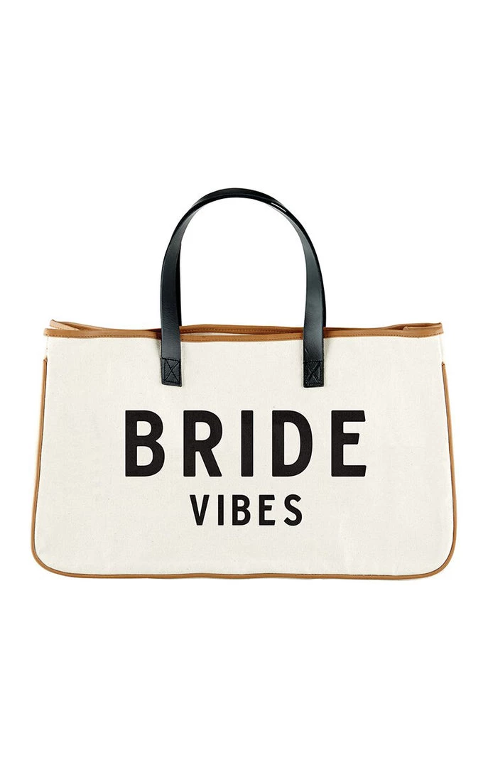 Our bride vibes canvas toe bag is the perfect addition to your beach bach or honeymoon getaway! The genuine leather handles stitched to heavyweight canvas provides a clean modern look