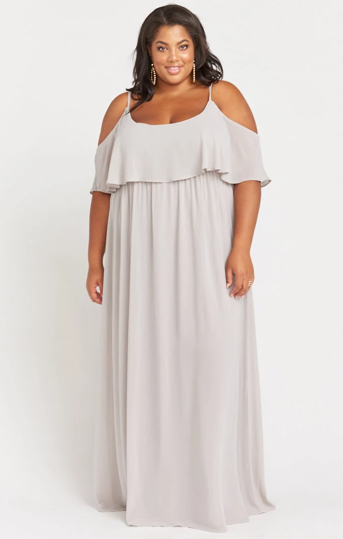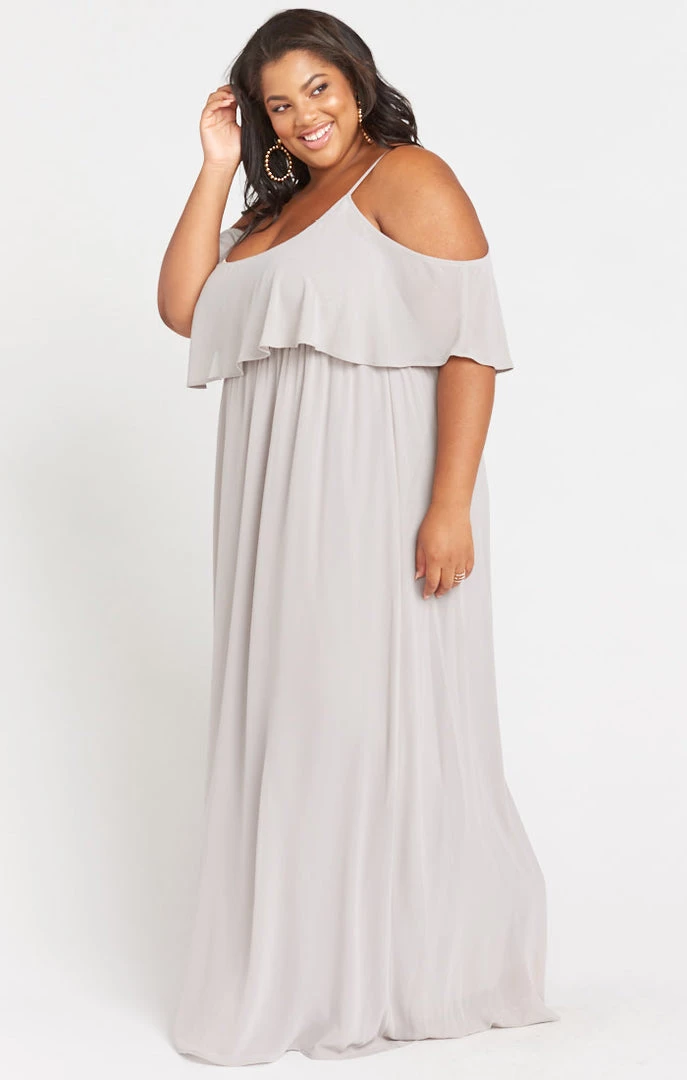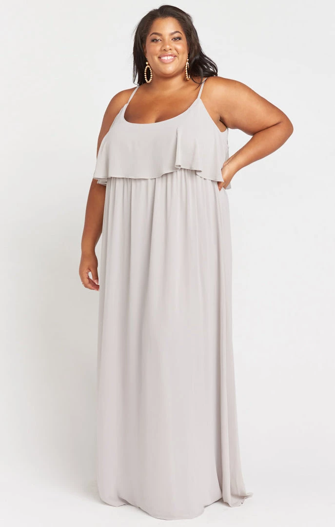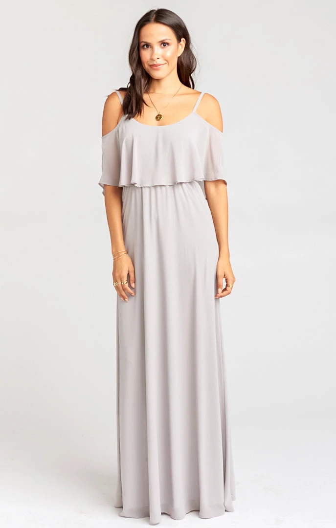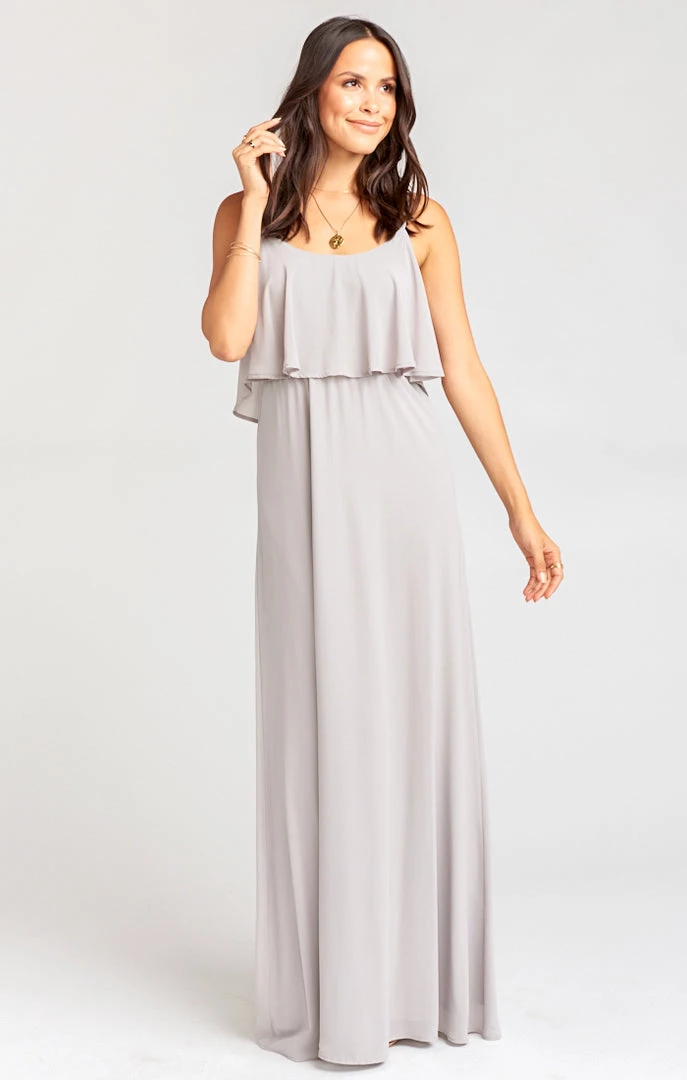Show Me Your Mumu Bridesmaids Dresses Caitlin Ruffle Maxi Dress ~ Dove Grey Chiffon