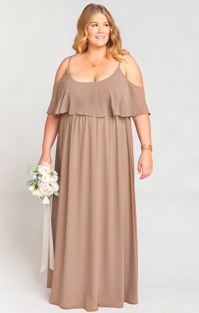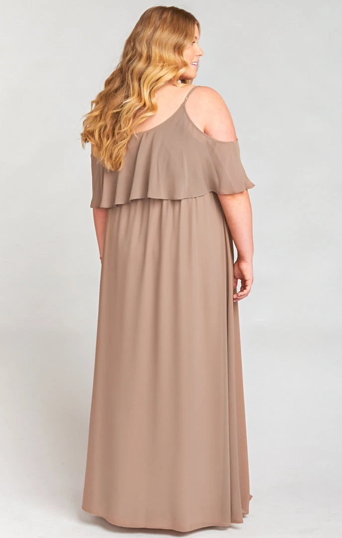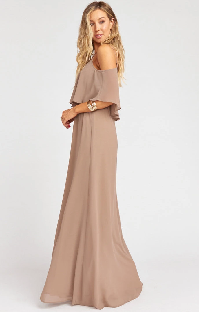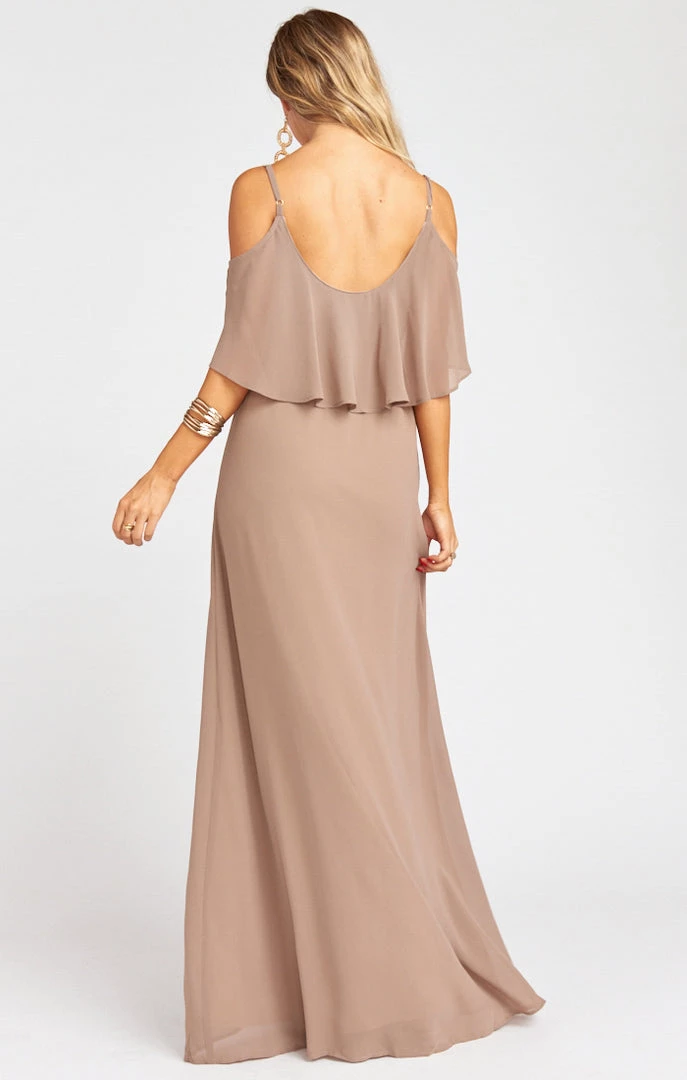 Show Me Your Mumu Bridesmaids Dresses Caitlin Ruffle Maxi Dress ~ Dune Chiffon