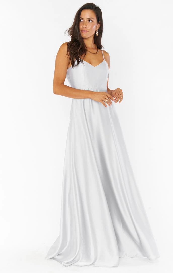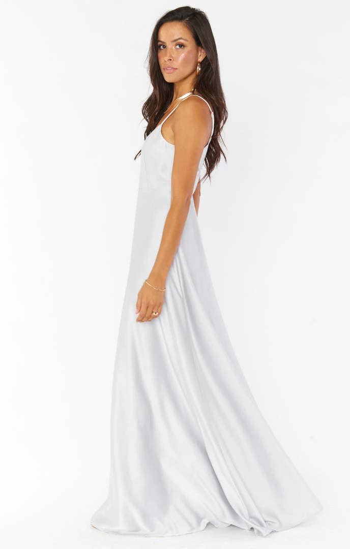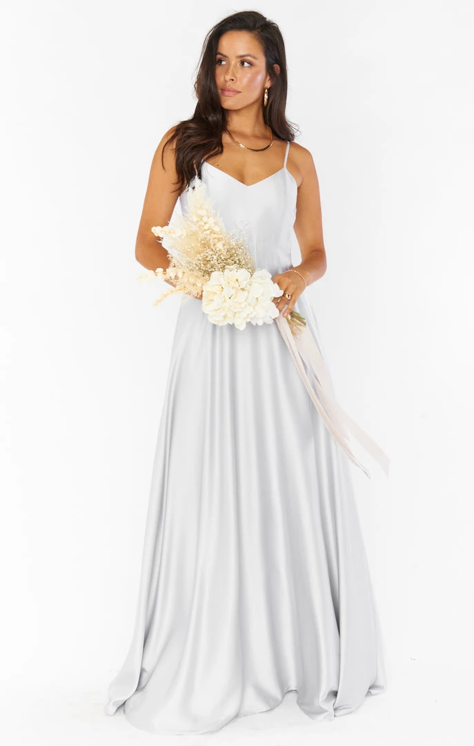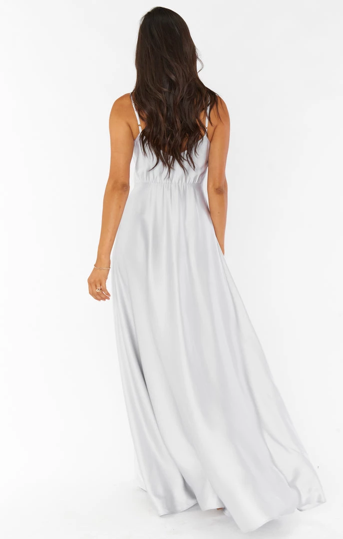 Show Me Your Mumu Bridesmaids Dresses Faith Maxi Dress ~ Silver Luxe Satin