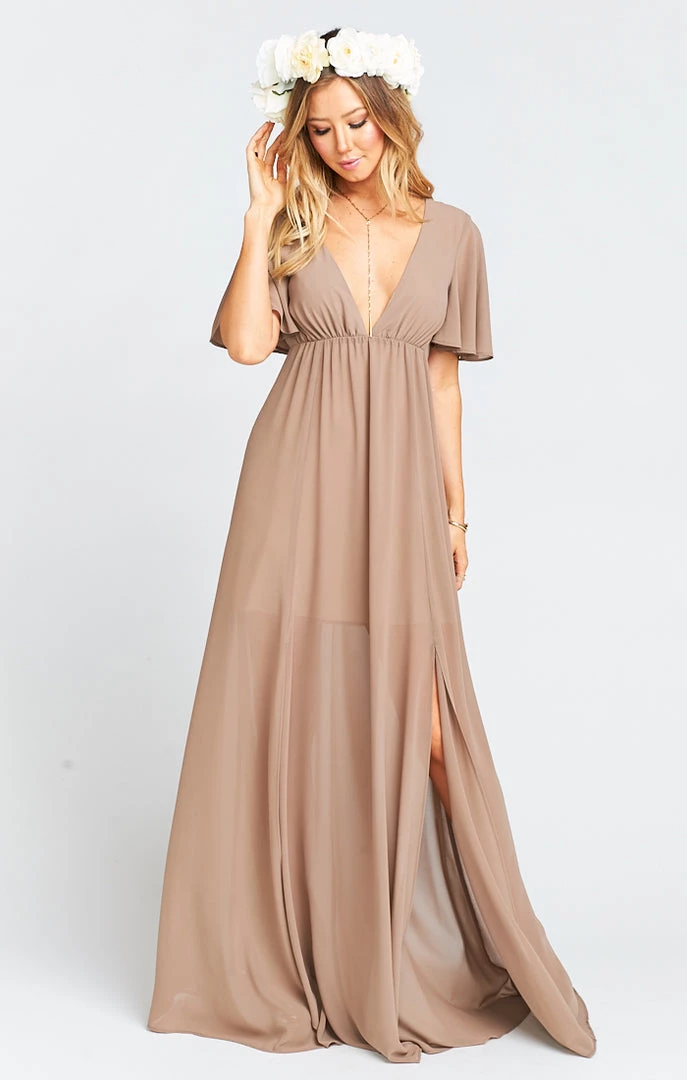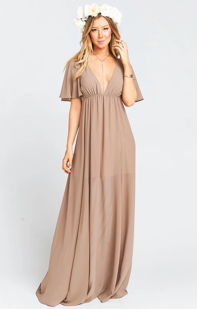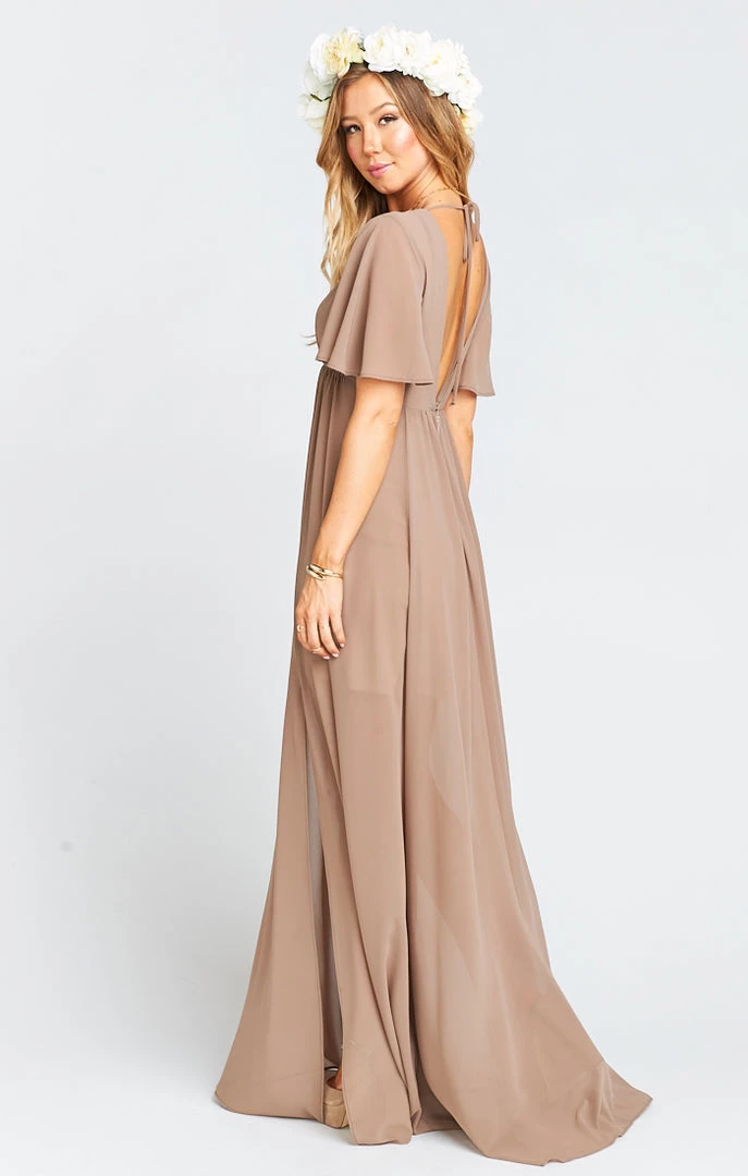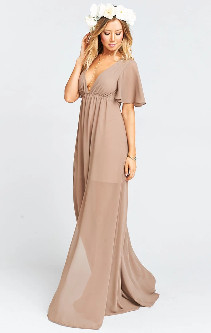 Show Me Your Mumu Bridesmaids Dresses Faye Flutter Maxi Dress ~ Dune Chiffon