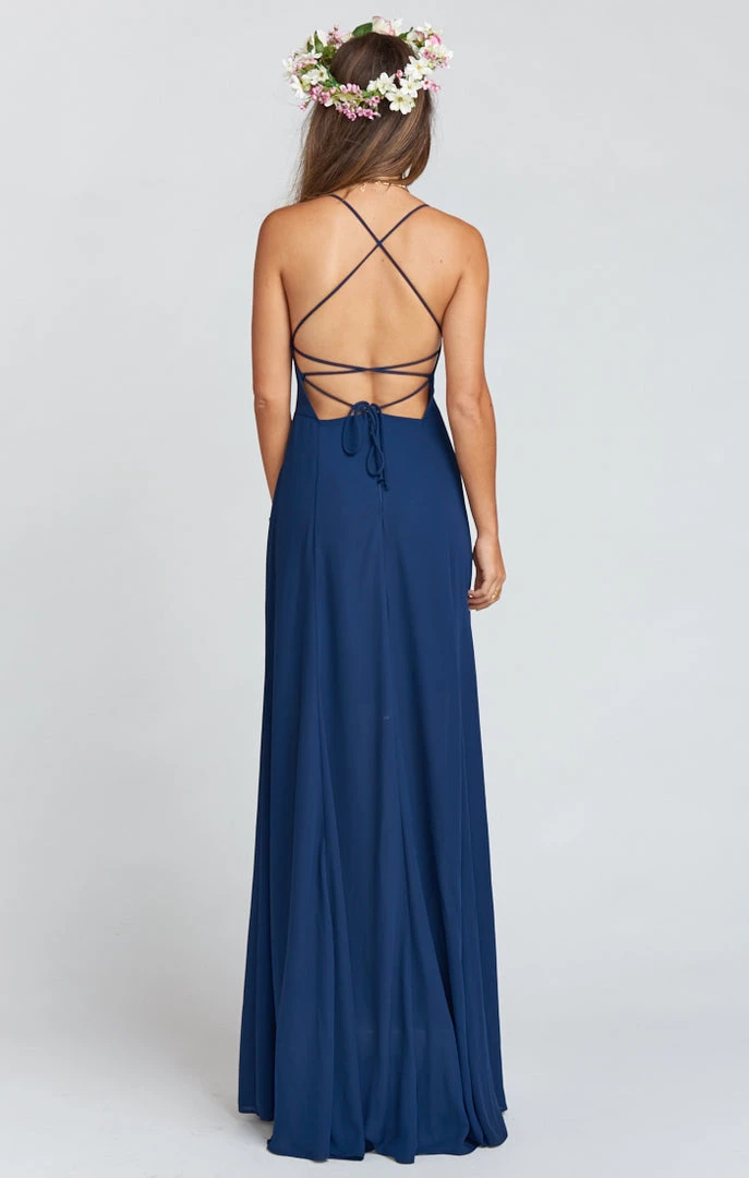 Show Me Your Mumu Bridesmaids Dresses Godshaw Goddess Gown With Short Lining ~ Rich Navy Crisp