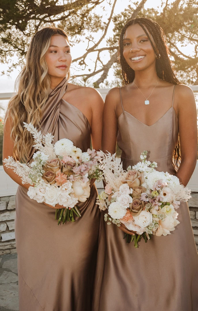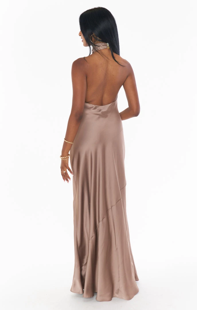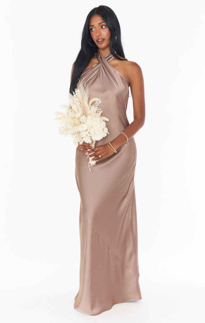 Show Me Your Mumu Bridesmaids Dresses Jasmine Halter Maxi Dress ~ Dune Luxe Satin