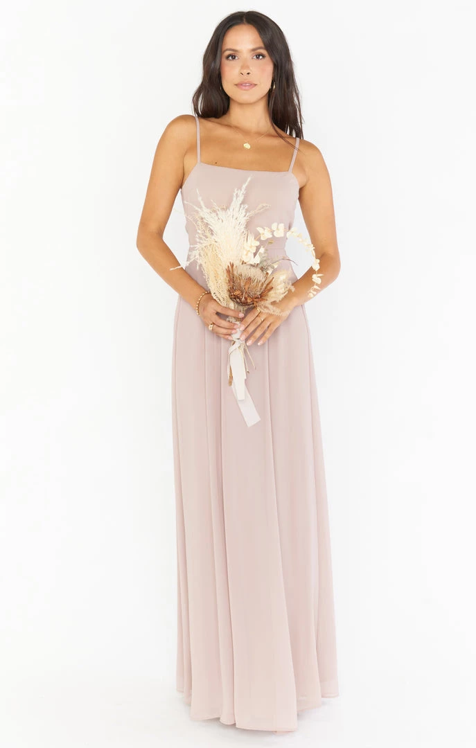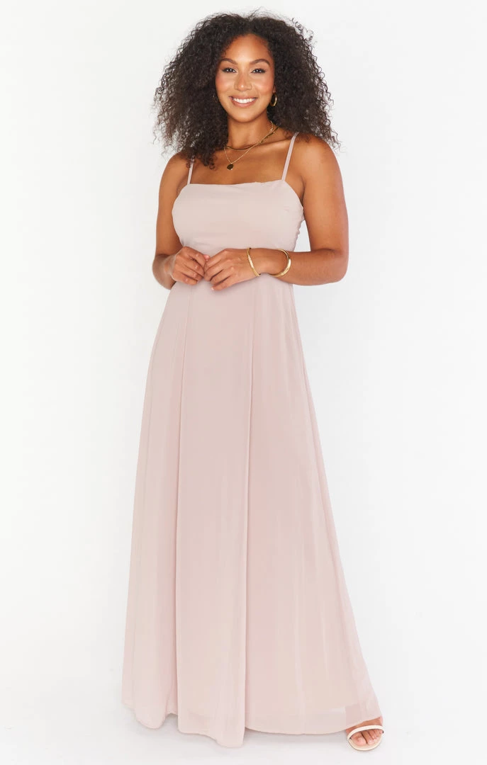 Show Me Your Mumu Bridesmaids Dresses Lauren Tie Maxi Dress ~ Soft Beige Chiffon