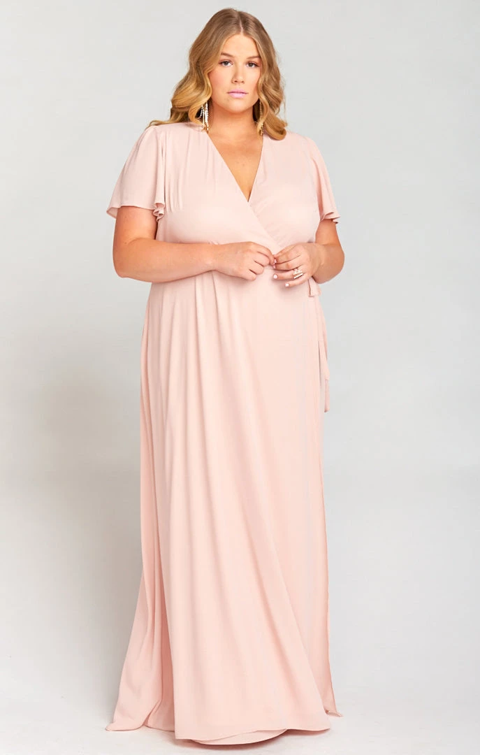 Show Me Your Mumu Bridesmaids Dresses Noelle Flutter Wrap Dress ~ Dusty Blush Crisp