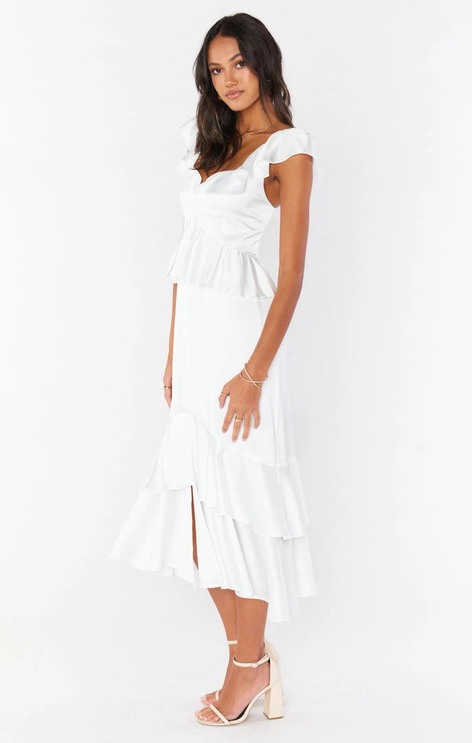 Show Me Your Mumu Bridesmaids Dresses Reese Ruffle Dress ~ Ivory Luxe Satin