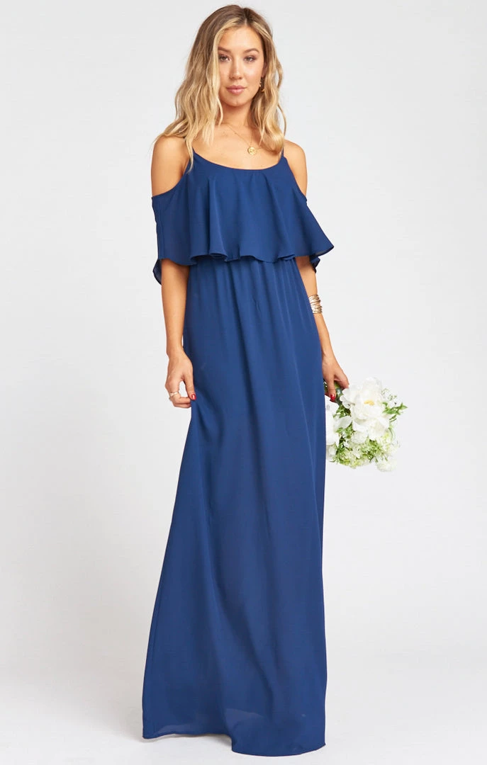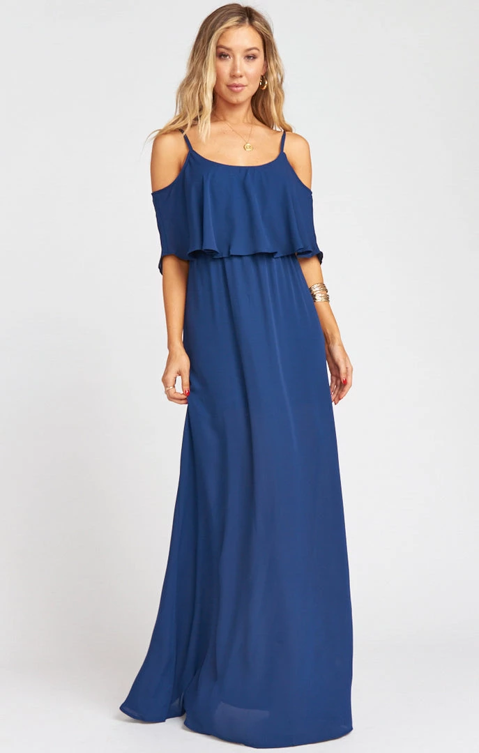 Show Me Your Mumu Caitlin Ruffle Maxi Dress With Long Lining ~ Rich Navy Crisp
