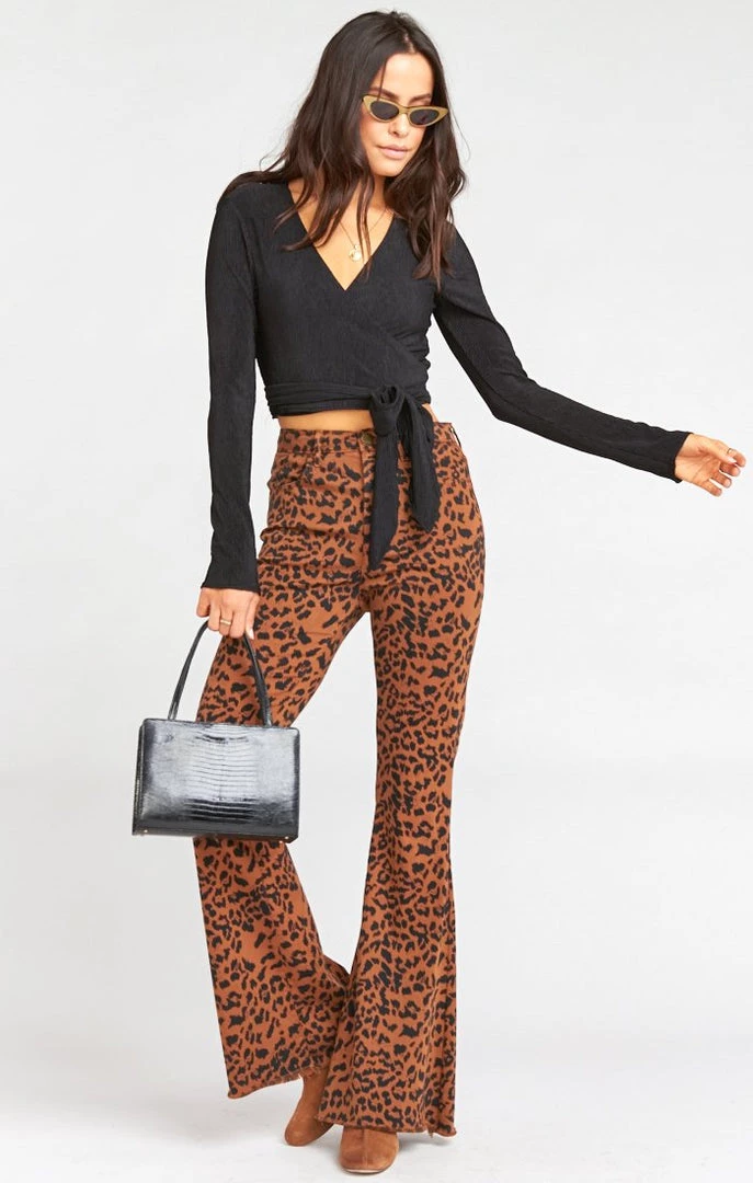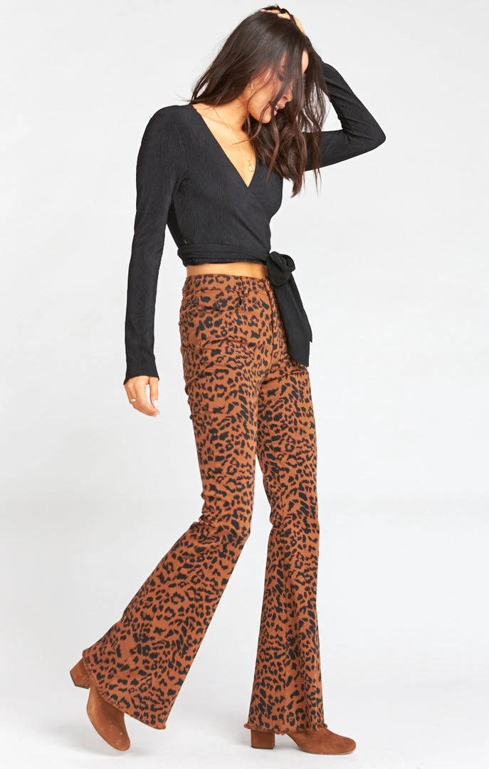 The perfect zip up bells. These leopard bell bottoms feature a high rise waist, zip up closure, two front pockets and the perfect amount of flare. Feel like a true animal print queen in these perfect flattering bells!