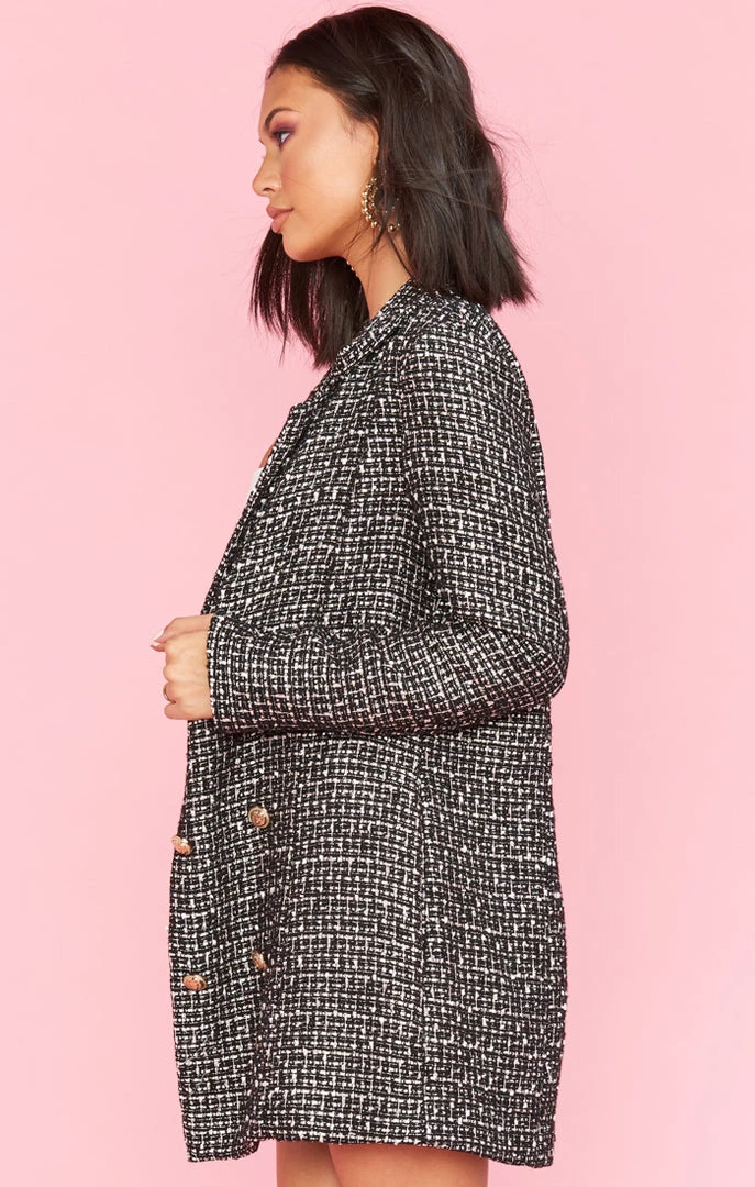 Dazzle and daze the crowd in this chic new jacket. This jacket features a front button down closure with chain detailing. Throw on this jacket and get ready to feel like a true superstar!