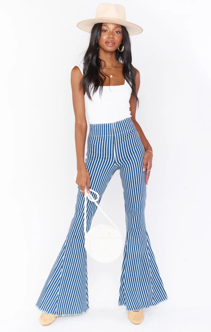 SKU: show-me-your-mumu-4885578580011 Categories: Bell Bottom Jeans, Bell Bottoms, Bottoms, Bottoms, Clothes, Denim, Denim, New Mu, Pants, Pants Tags: Child:Blue Coast Stripe, Final_sale, Out Of Stock, Parent:berkeley-bells, SU21SALE, Type:bottoms, Type:denim, YGroup_berkeley-bells