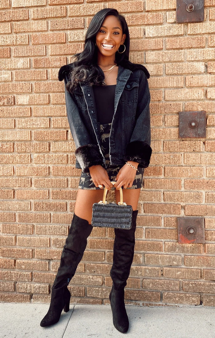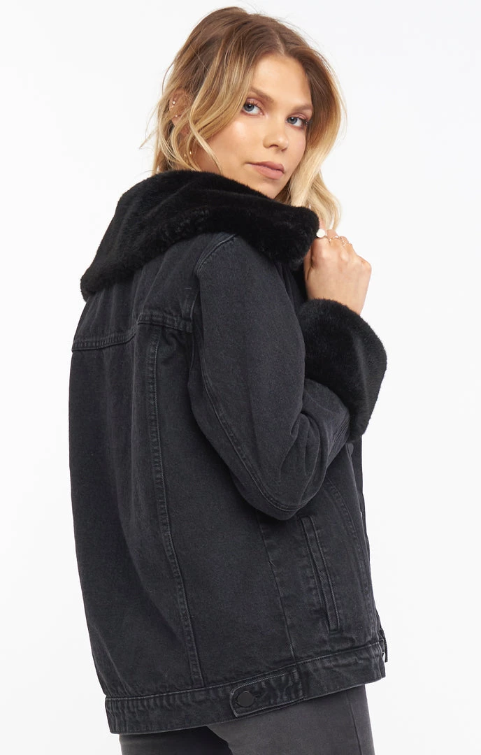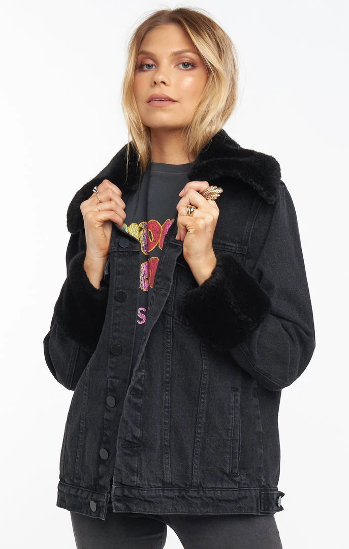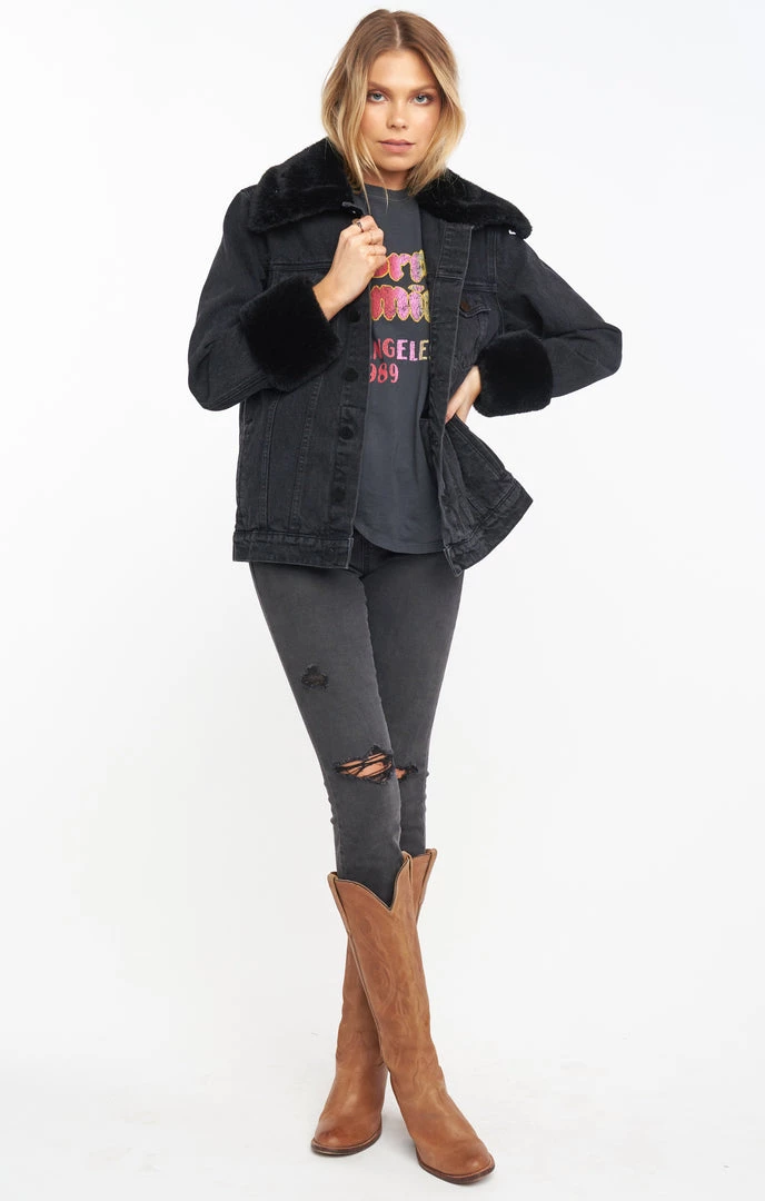 Show Me Your Mumu Denver Denim Jacket ~ Washed Black With Faux Fur