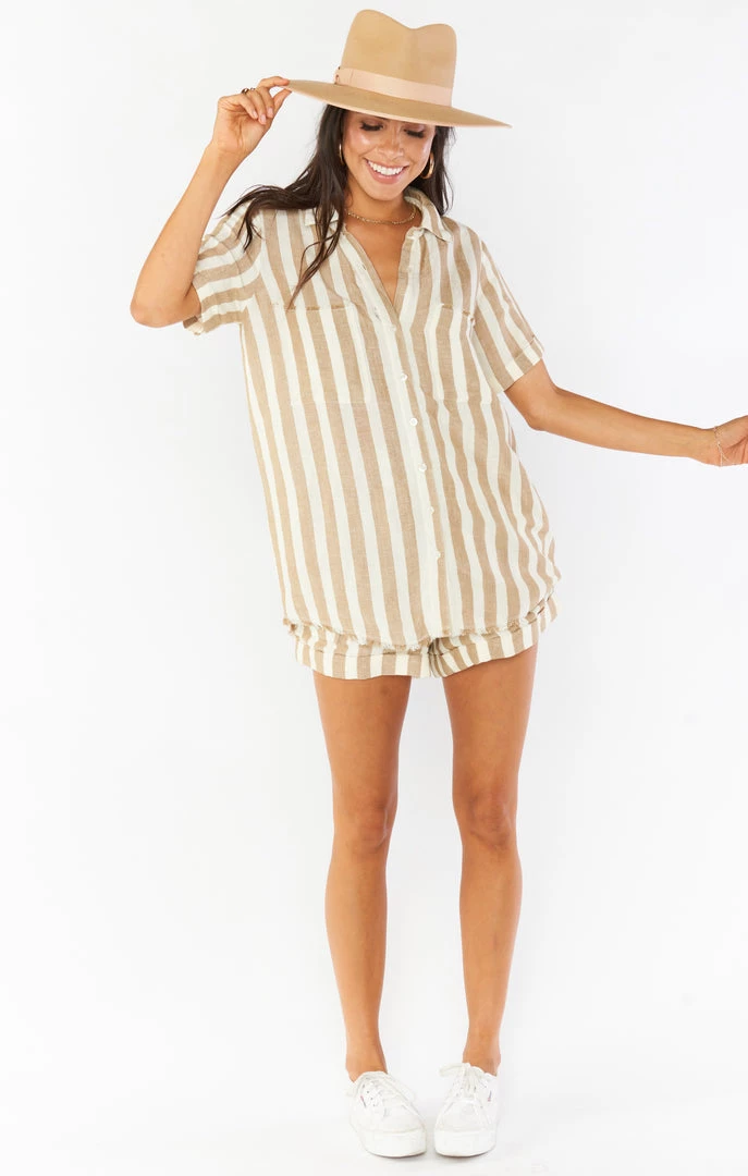 Show Me Your Mumu Disilvio Shorts ~ Khaki Stripe Linen