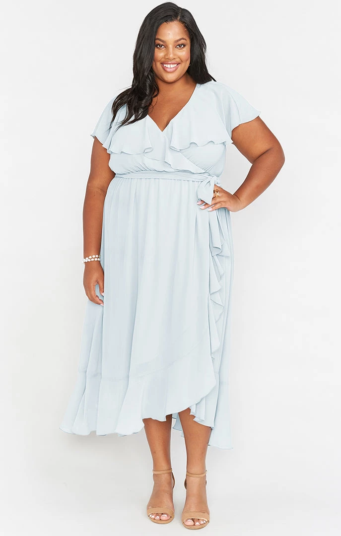 Show Me Your Mumu Dresses Jess Ruffle Midi Dress ~ Icy Blue Chiffon