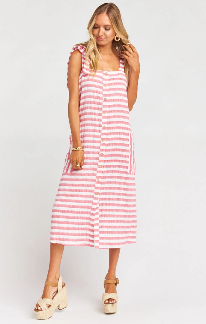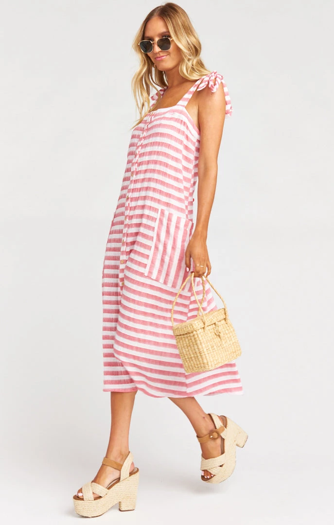 Show Me Your Mumu Dresses Lucas Midi Dress ~ Dock Stripe Red