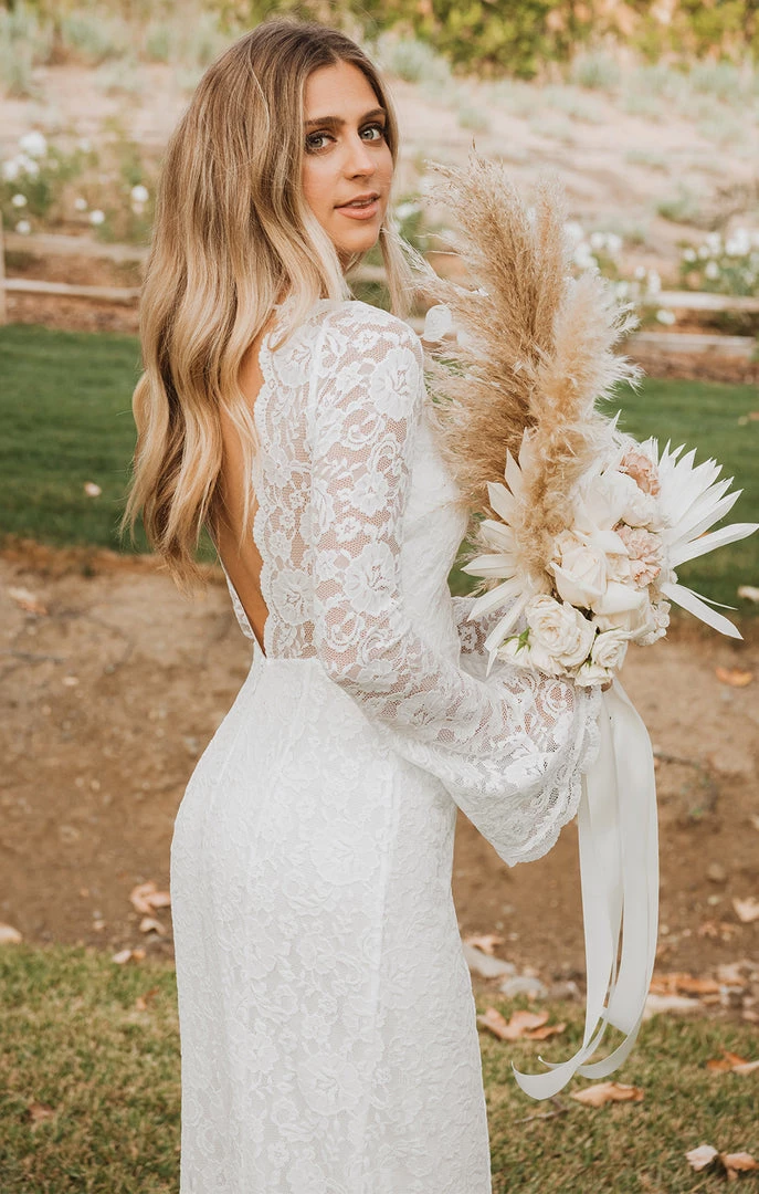 Natalie loves a bit of flare, so this new open back maxi has a flared sleeve an elegant scallop. Ties at the shoulder to you get all the benefits of an open back with a secure fit, this stretch lace maxi sit high at the neckline to accentuate the dramatics behind you.