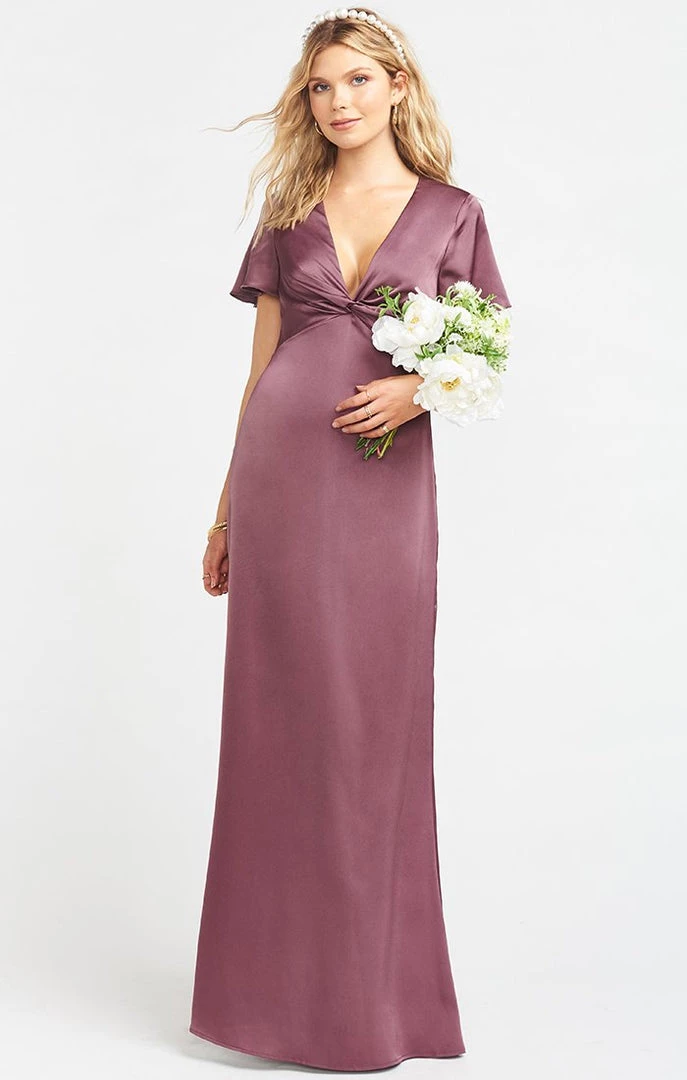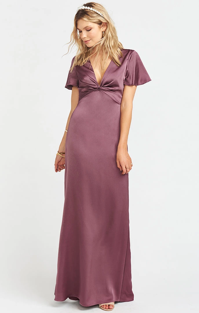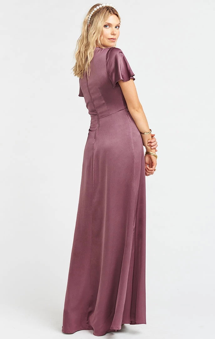 Show Me Your Mumu Dresses Rome Twist Gown ~ Dusty Plum Luxe Satin