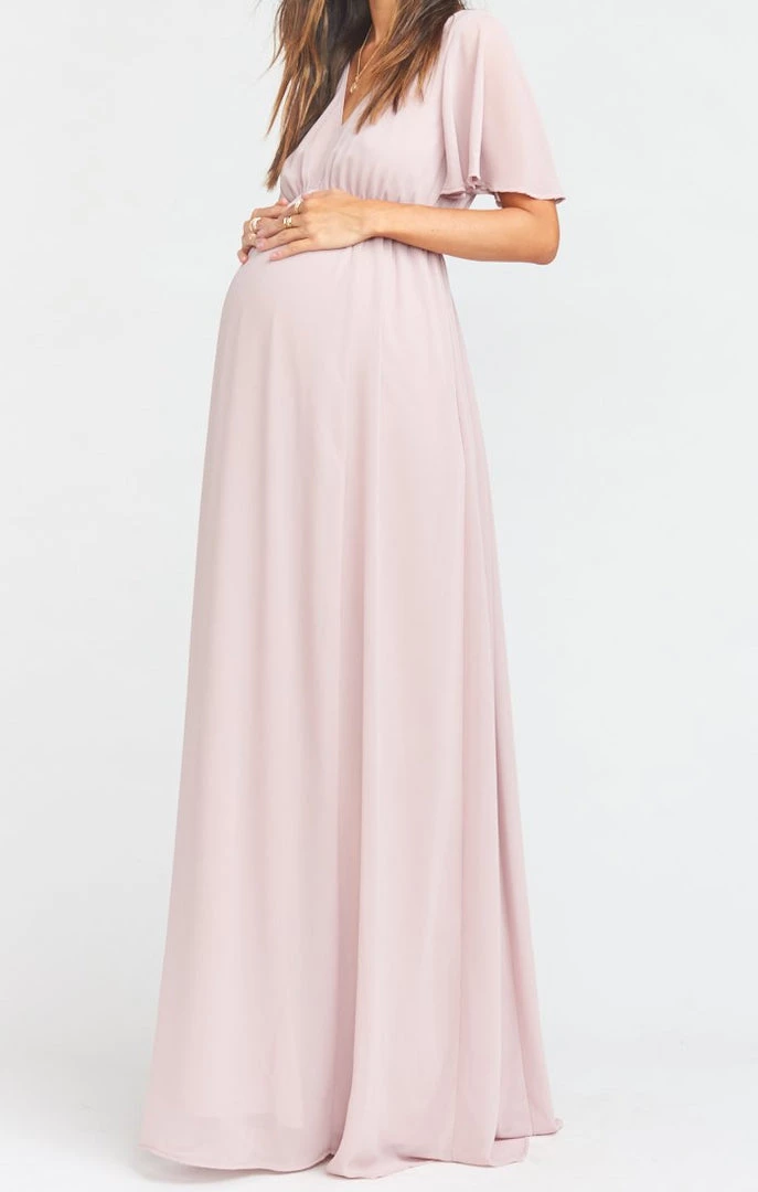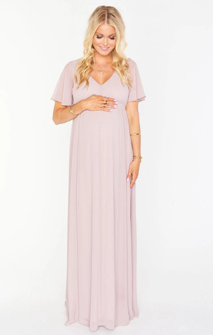 Show Me Your Mumu Emily Empire Maxi Dress ~ Neutral Mauve Chiffon Maternity