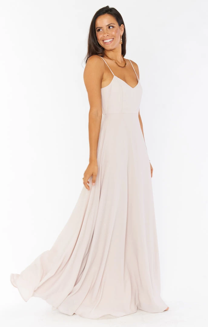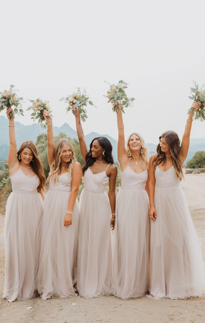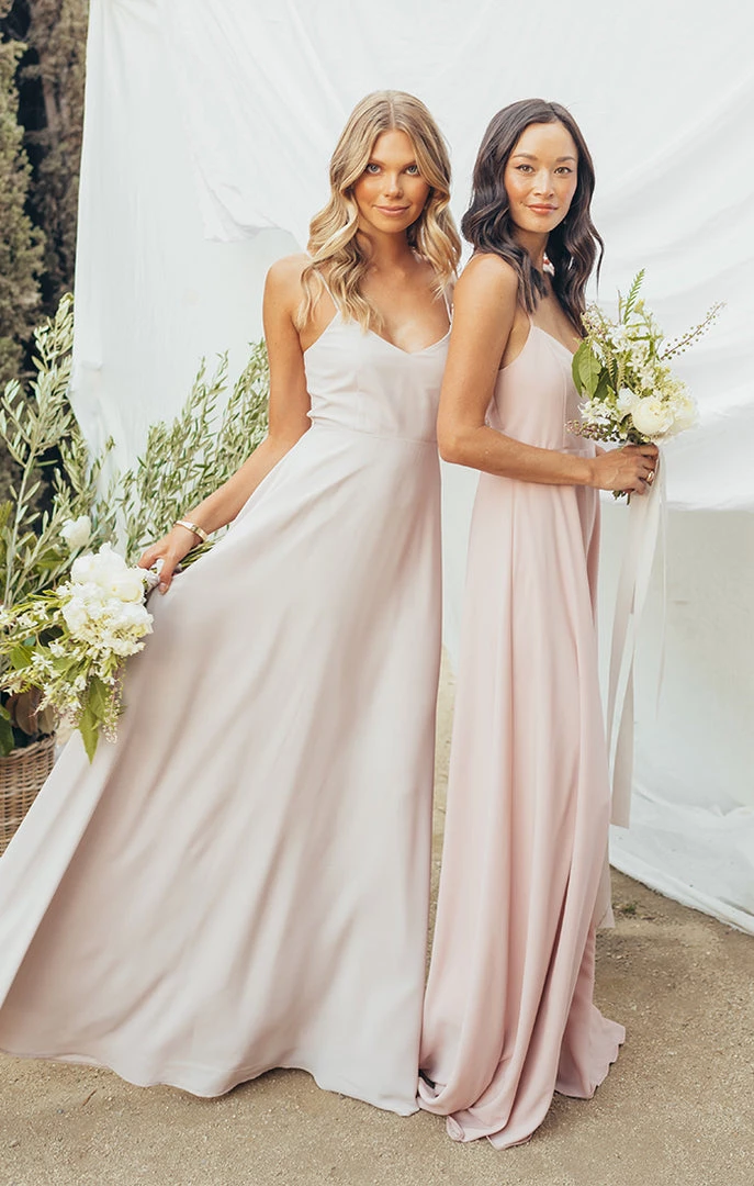 The Faith Maxi Dress has raised the bar for elegant bridesmaids. This stunning maxi has a fitted bodice that hits at the top of your waist allowing the dramatic sweep of her full skirt to flatter as you walk. Trust us when we say, you gotta have Faith! As this is a style with a fitted bodice without smocking, we suggest sizing up if you have a larger chest.