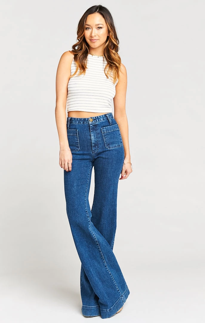 Charlie’s Favorite Mu Angel has just arrived complete with a slimming retro high waist, high pockets and the perfect 70’s flare leg! You’ll be strutting your stuff especially when paired with your Fawcett crop and that fabulous hair. But be careful! You just might attract a six million dollar kinda MuMan…!