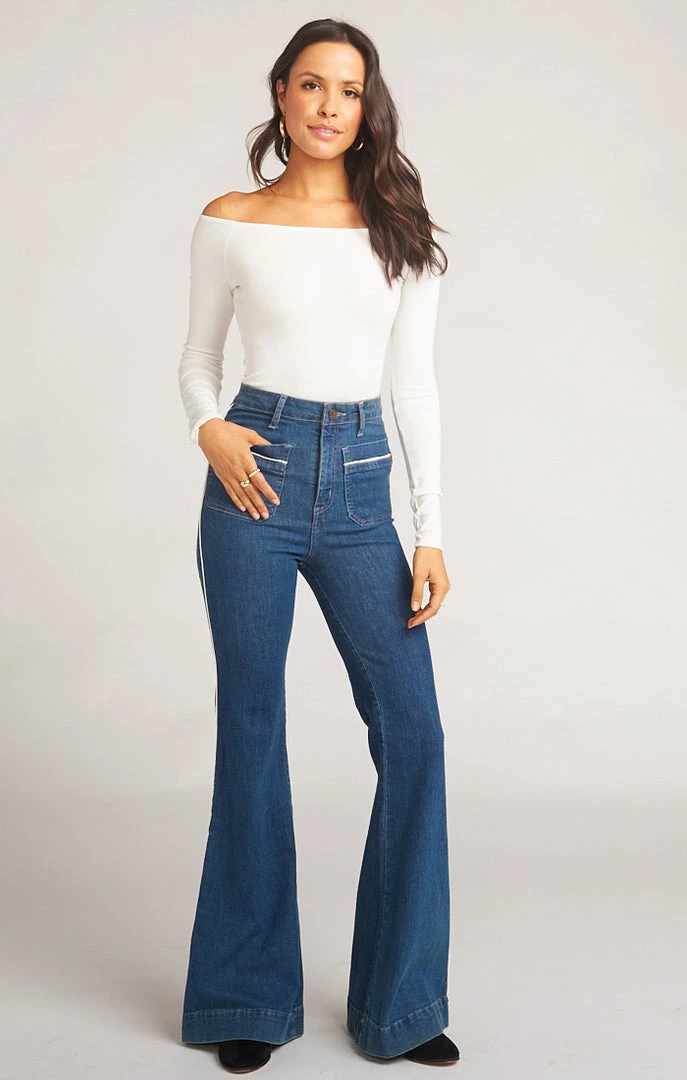 SKU: show-me-your-mumu-1711708635179 Categories: Bell Bottom Jeans, Bell Bottoms, Bottoms, Bottoms, Clothes, Denim, Denim, New Mu, Pants, Pants Tags: Black_friday_19, Child:Marine with Piping, Entity_id:49124, Inseam:regular, Rise:high waisted, Season:18HO, Type:bottoms, YGroup_farrah-trouser-flare