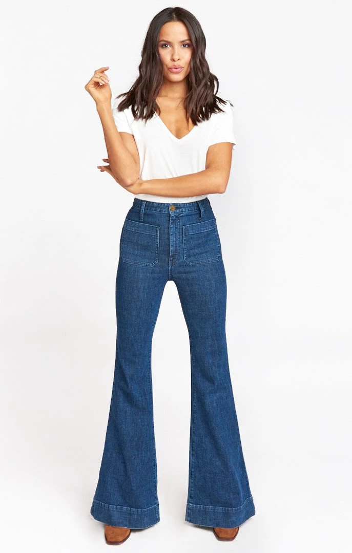 Charlie’s Favorite Mu Angel has arrived, complete with a slimming retro high waist, high pockets and the perfect 70’s flare leg! This pair of Farrahs in Downpour are gonna take you by surprise, you wont want to cover any of this true blue denim. Bright enough for a sunshiney day but dark enough to feel sleek and cool!