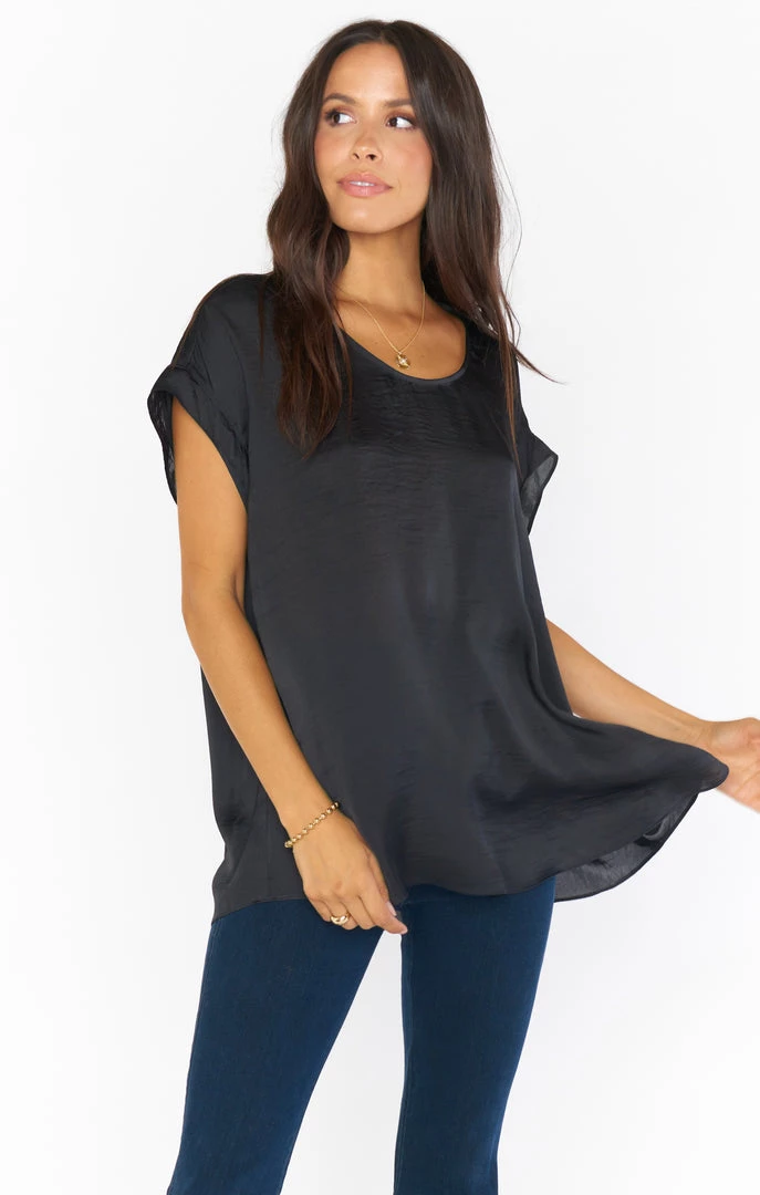 SKU: show-me-your-mumu-4512809058347 Categories: Blouses, Clothes, Dresses, New Mu, Tops, Tops, Tunics, Tunics Tags: Child:Black Silky Satin, Parent:frankie-tunic, Sleeve:short sleeve, Type:tops, YGroup_frankie-tunic