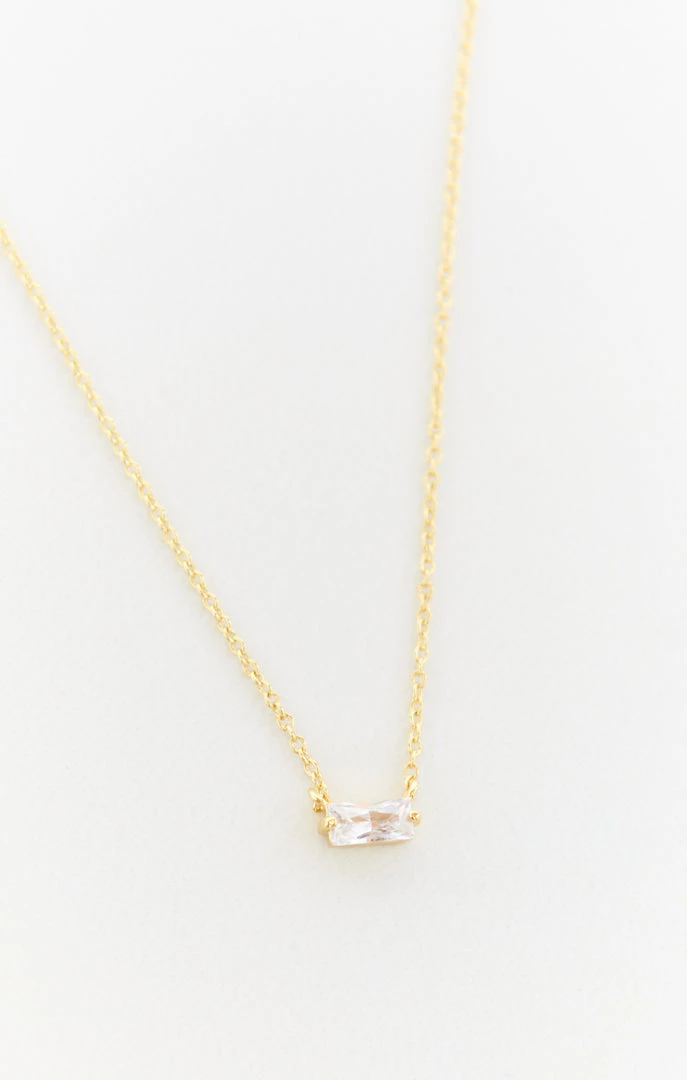 A solitaire baguette-cut cubic zirconia charm gleams at the center of this delicate necklace.
