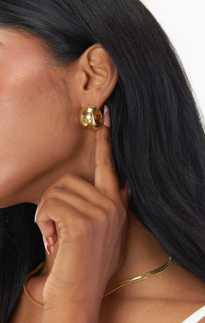 Universally flattering and simply stylish, hoop earrings are an essential for everyday. Not afraid to stand out? These small hoop earrings are perfect for you. PS. These hoop earrings are hollow, lightweight, and comfortable.