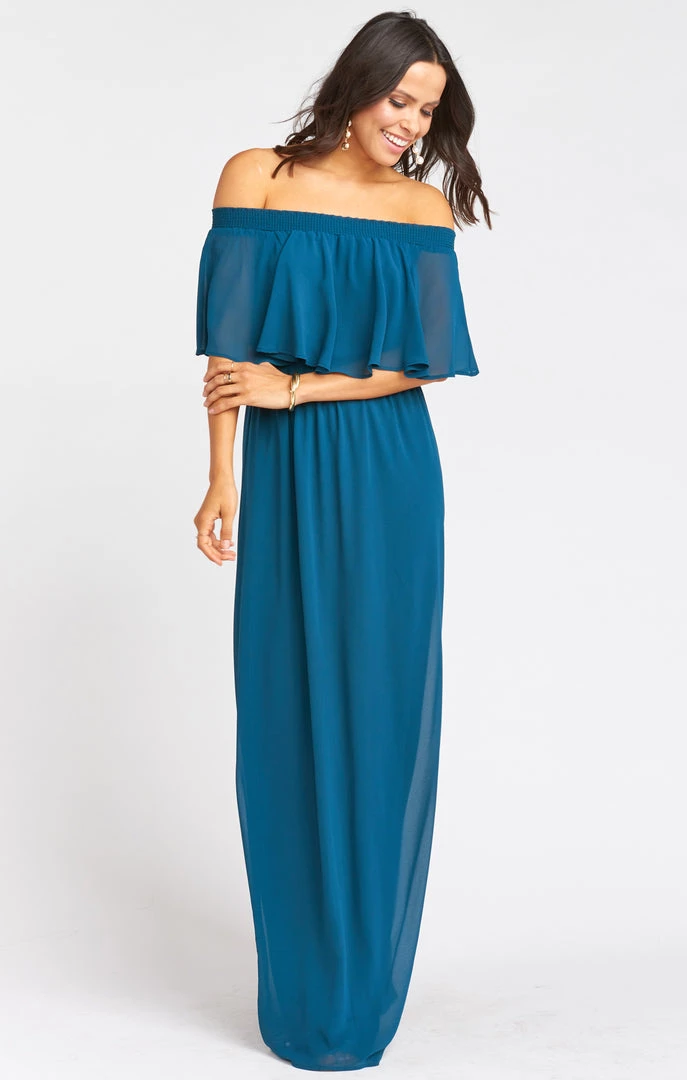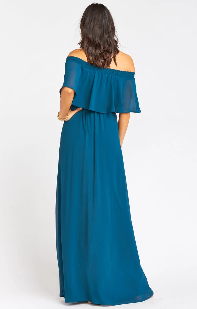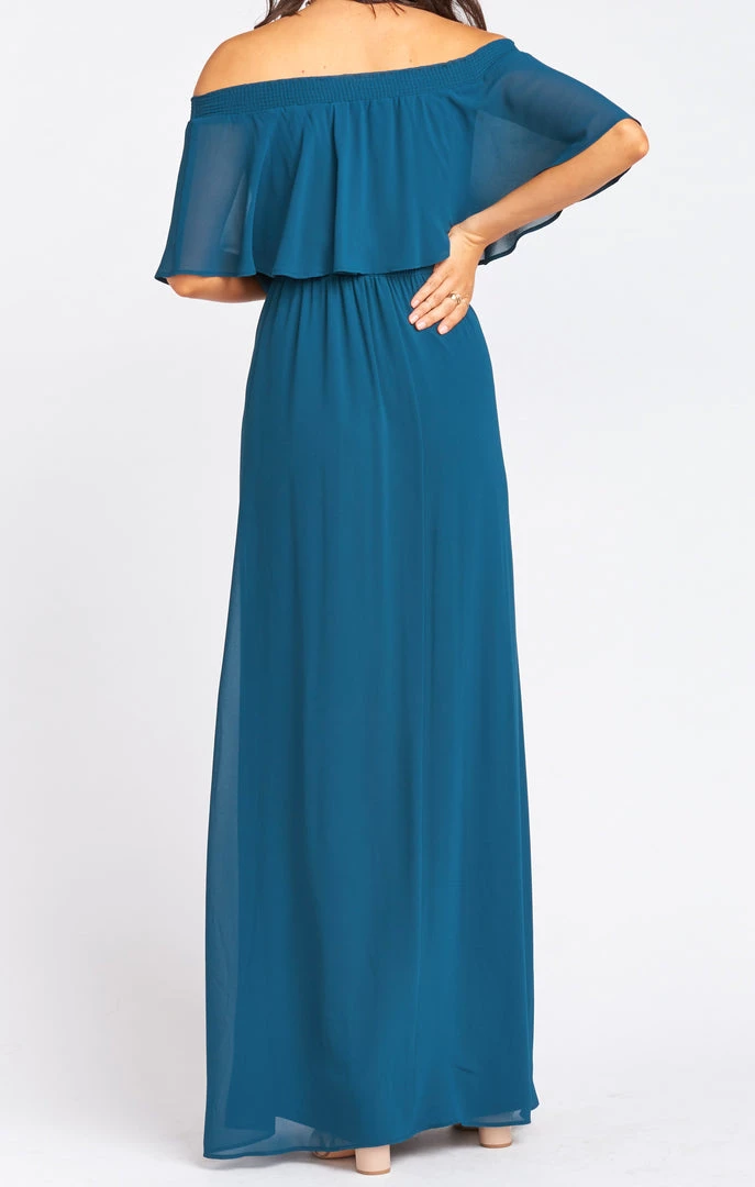 Show Me Your Mumu Hacienda Maxi Dress ~ Deep Jade Chiffon Maternity