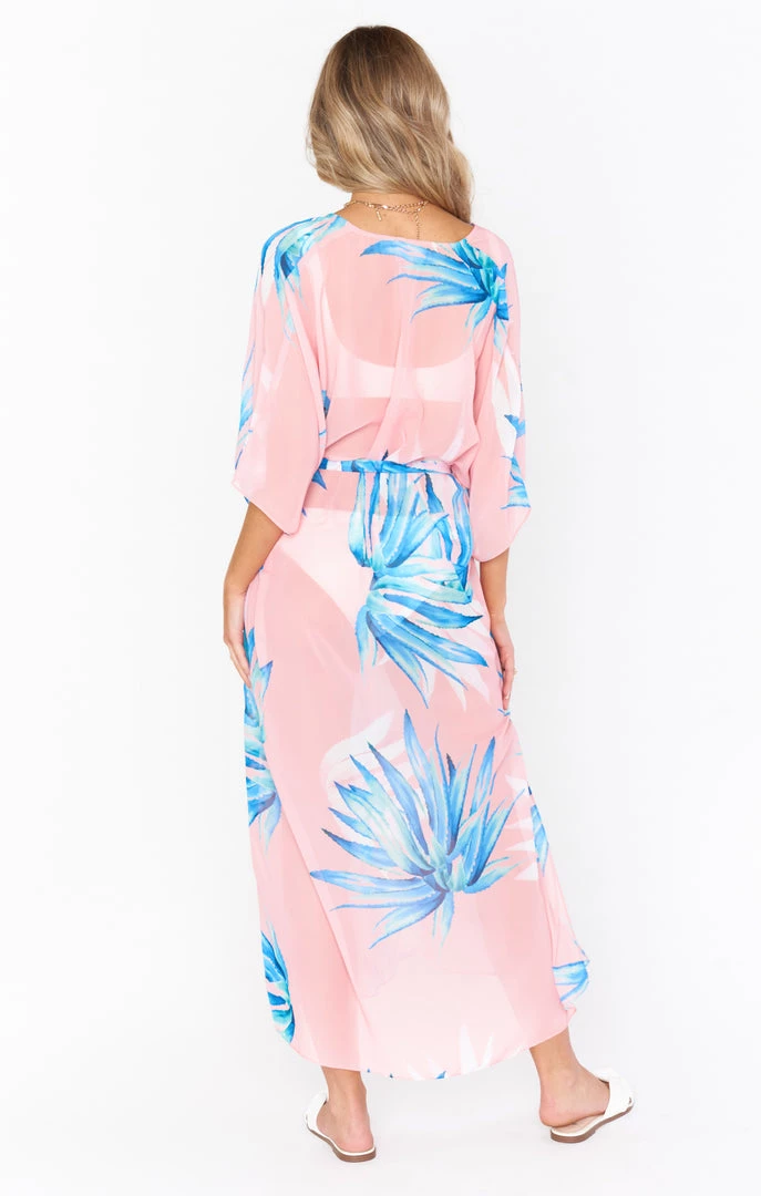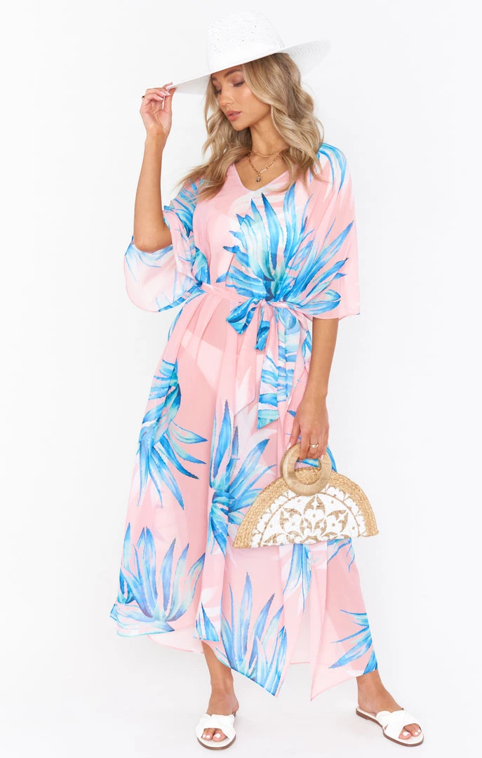 The Hana is a true Mumu OG, her perfectly flowy kaftan body is the epitome of regal. While primarily a swim cover up she is chic as can be with a slip dress underneath or even a tight top and denim shorts. Wherever you end up in this oversized tropical pastel maxi you will be looking effortlessly riche!