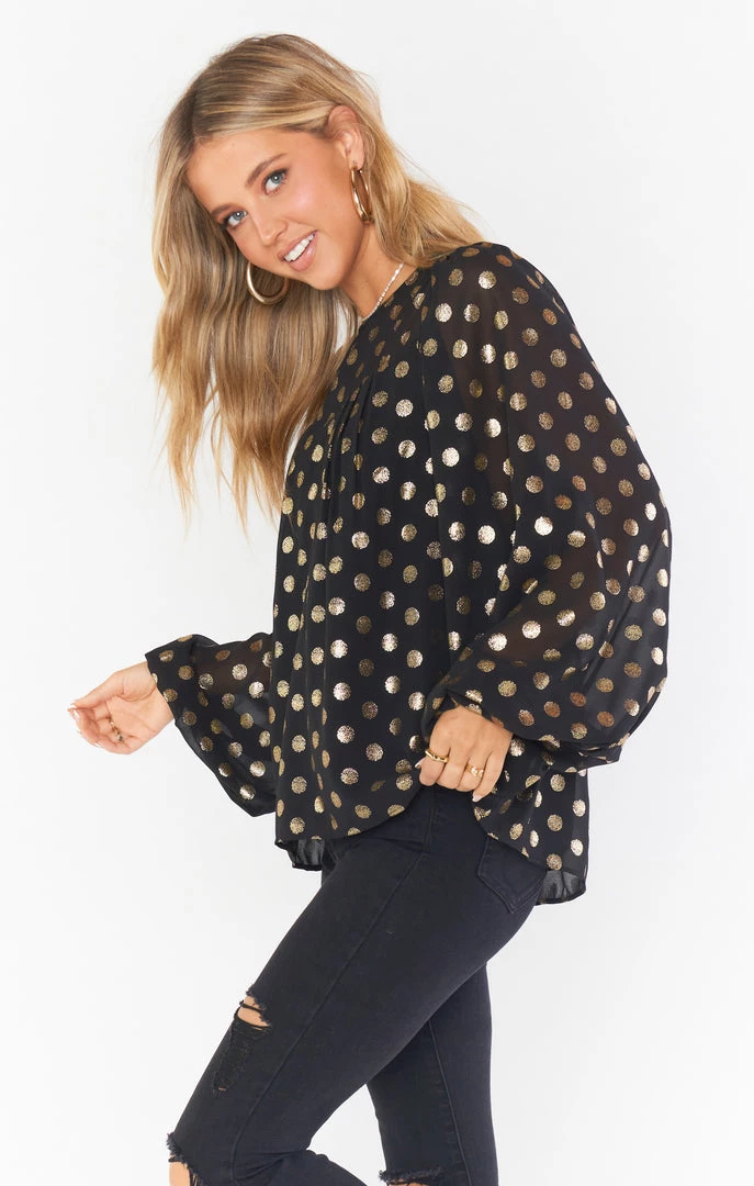 SKU: show-me-your-mumu-6619818983467 Categories: Blouses, Clothes, New Mu, Tops, Tops Tags: Child:Cosmic Dot Gold, Final_sale, In_sale_section, NewMuSaleRemover, Out Of Stock, Sleeve:long sleeve, Tues 10/26, YGroup_happy-hour-top