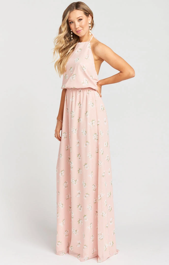 The Heather Halter has a mid rise back, a high neckline that ties, and a cinched waistline making her undoubtedly the perfect dress whether you’re a bridesmaid or a guest. If you want to make her more formal, dress her up with a Mumu bridesmaid sash.