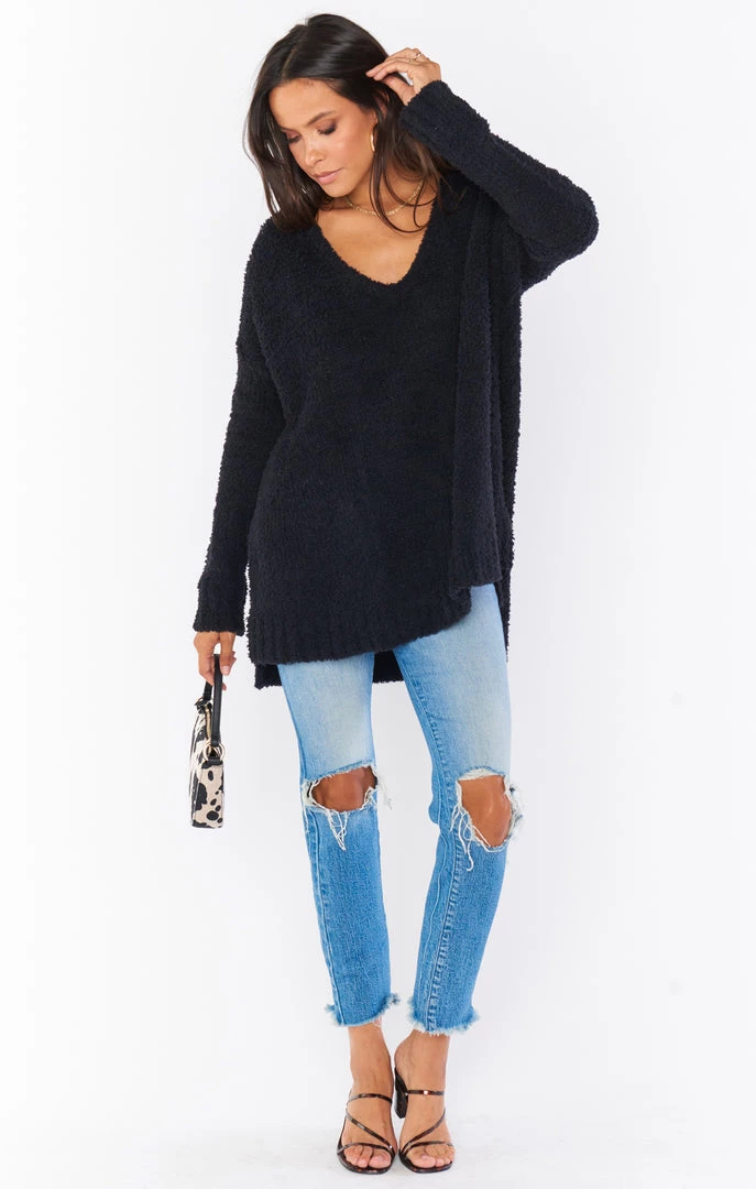 Show Me Your Mumu Hug Me Sweater ~ Black Fuzzy Knit