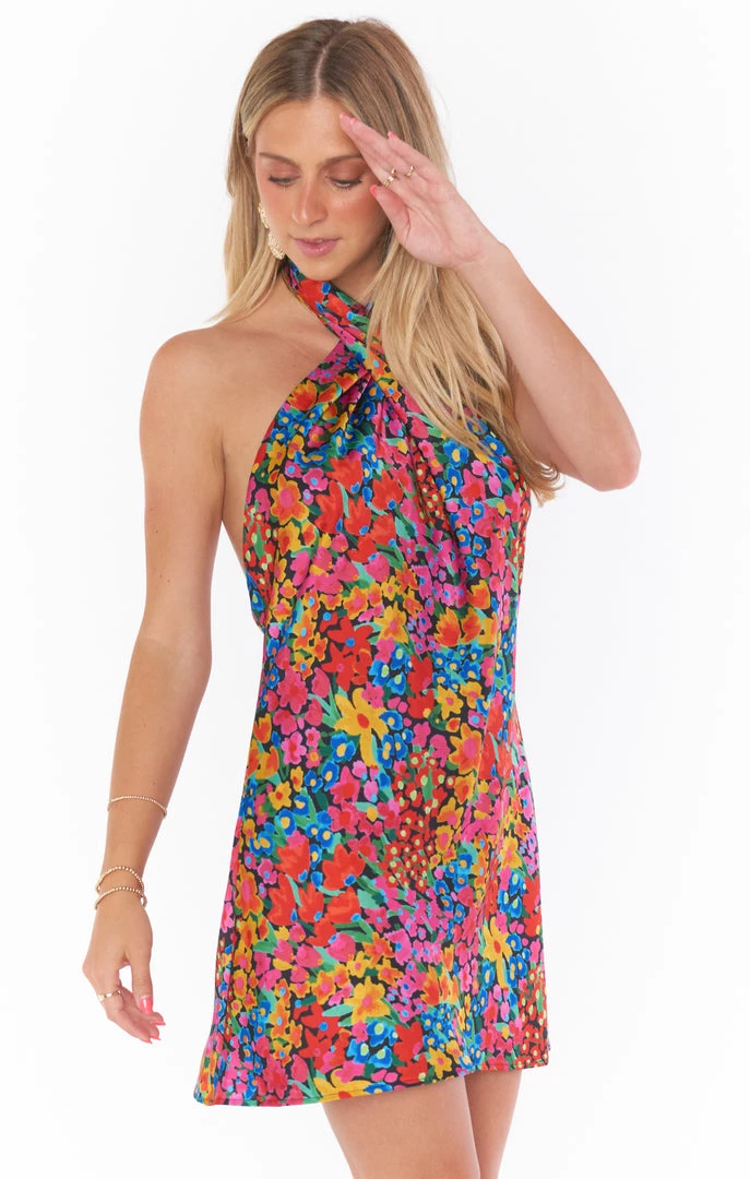 Our best selling halter maxi is now in mini length! This Garden Glow mini is cut on the bias to give that perfect slip draping we’re all looking for. The top softly wraps around your neck for a flattering high neck and leaves a dramatic open back. A new go-to for special occasions and a vacay date night!
