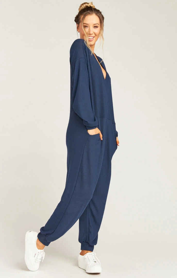 Show Me Your Mumu Jules Jumpsuit ~ Navy Brushed Hacci