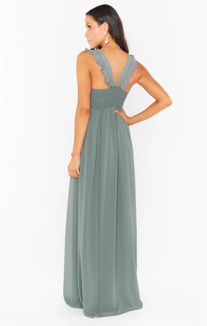 Show Me Your Mumu June Maxi Dress ~ Deep Sage Chiffon