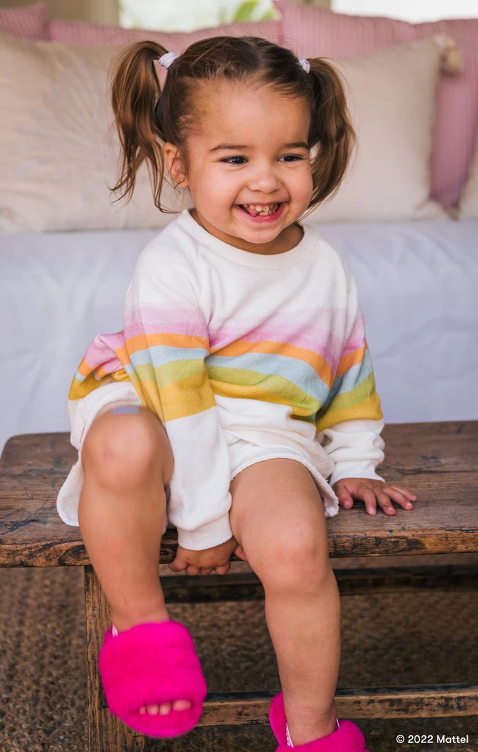 In celebration of the Dreamhouse as iconic as Barbie™ herself, we designed a line that encapsulates that Dream Life– all things, sand, surf, lounge & fun in the sun. We created a collection that takes you from a workout class to a beach day with the fam, a day out with your friends to a cozy movie night and everything in between.