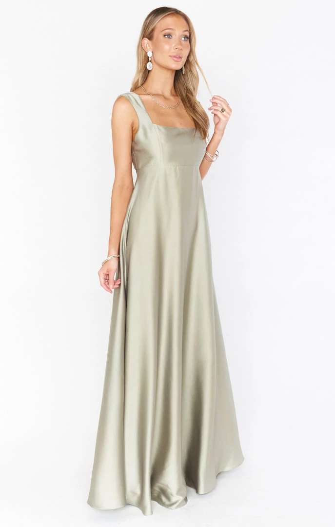 Show Me Your Mumu Madi Gown ~ Moss Green Luxe Satin