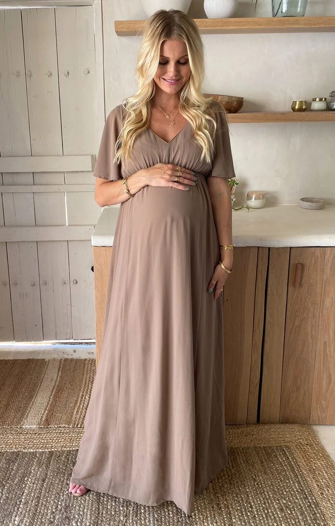 Show Me Your Mumu Maternity Emily Empire Maxi Dress ~ Dune Chiffon